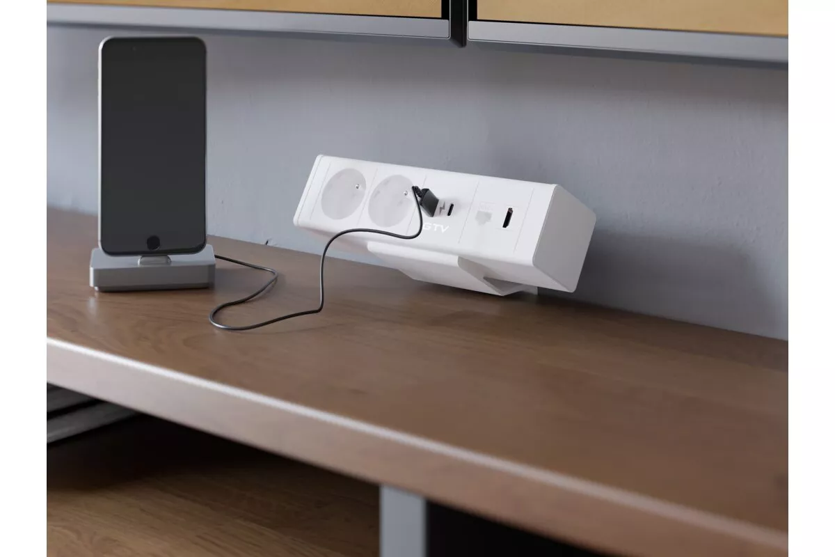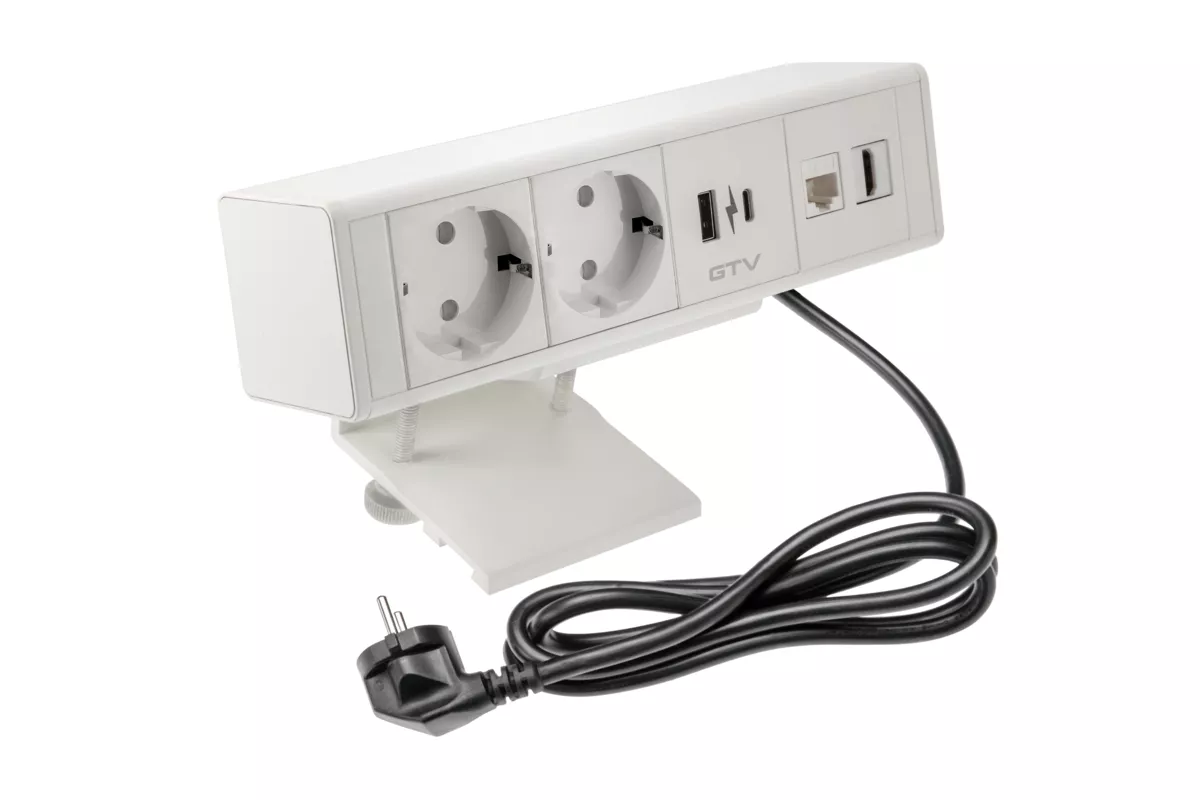 GNIAZDO MEBLOWE BAR, 2x GNIAZDO SCHUKO, 1xUSB A, 1xUSB C. 1xRJ45, 1xHDMI,, KABEL 1,5m, BIAŁE