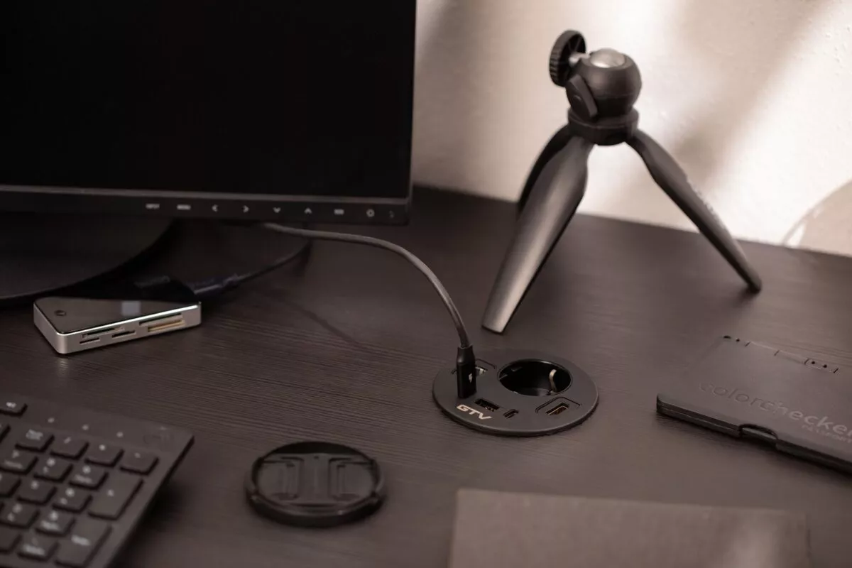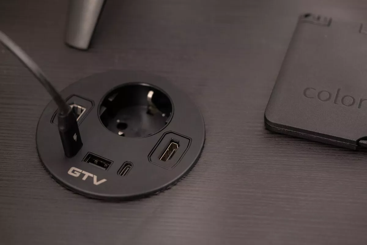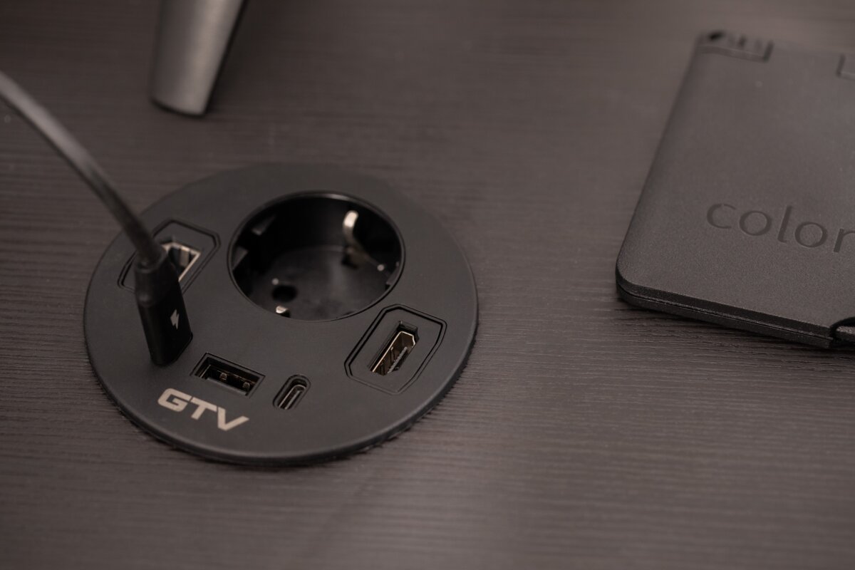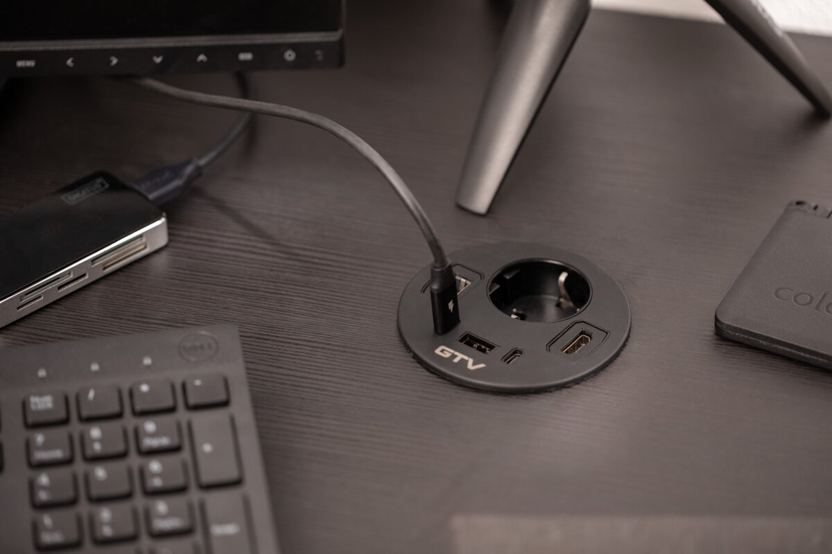GNIAZDO MEBLOWE WPUSZCZANE RONDO, 1 X GNIAZDO SCHUKO, 1 X USB A + 2 X USB C, 1 X RJ45, 1 X HDMI, KABEL 1,5m, CZARNE
