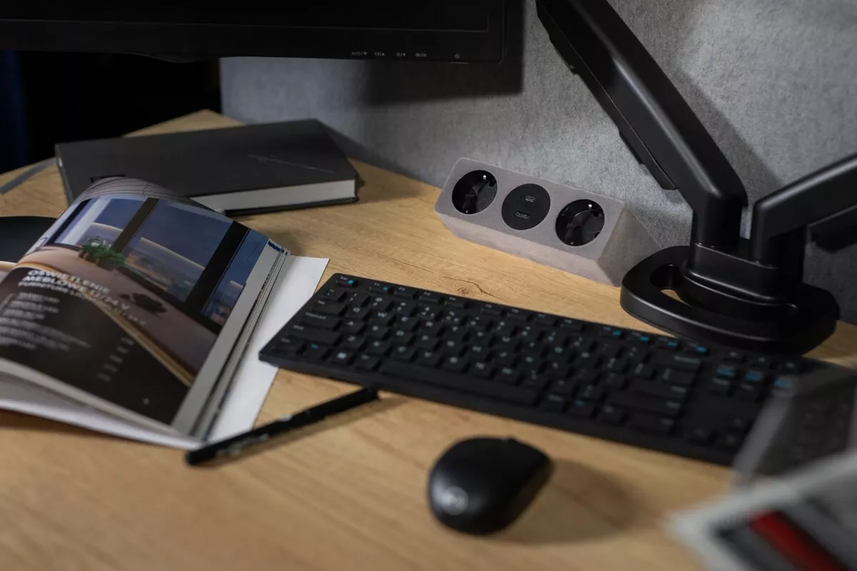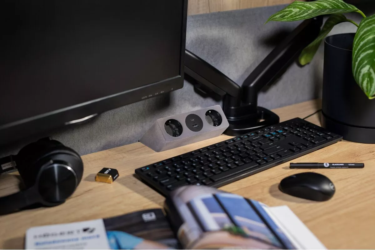 GNIAZDO MEBLOWE SOFITO, 2 X GNIAZDO SCHUKO, USB A+C, KABEL 1,5m, SZARY FLOK, Z MOCOWANIEM