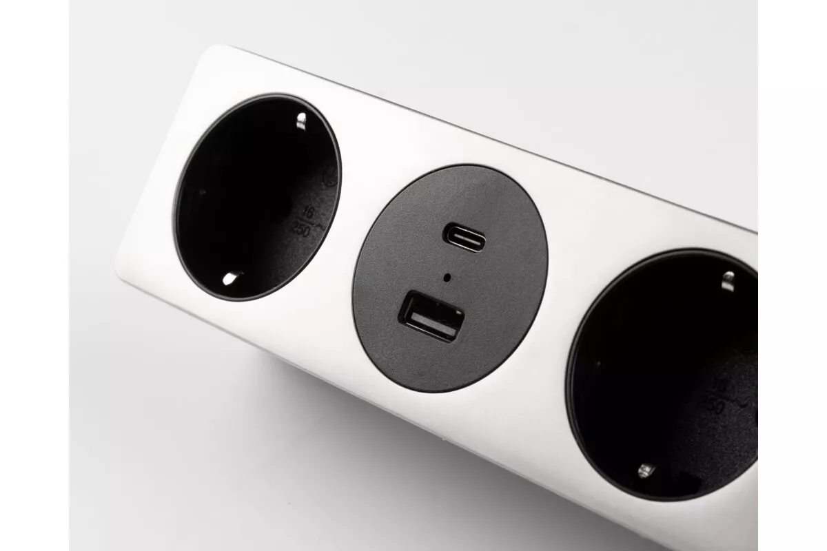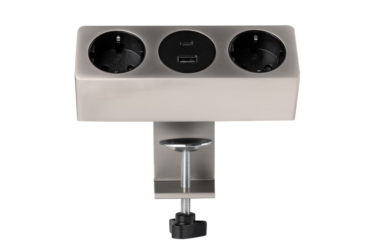 GNIAZDO MEBLOWE SOFITO, 2 X GNIAZDO SCHUKO, USB A+C, KABEL 1,5m, INOX Z MOCOWANIEM
