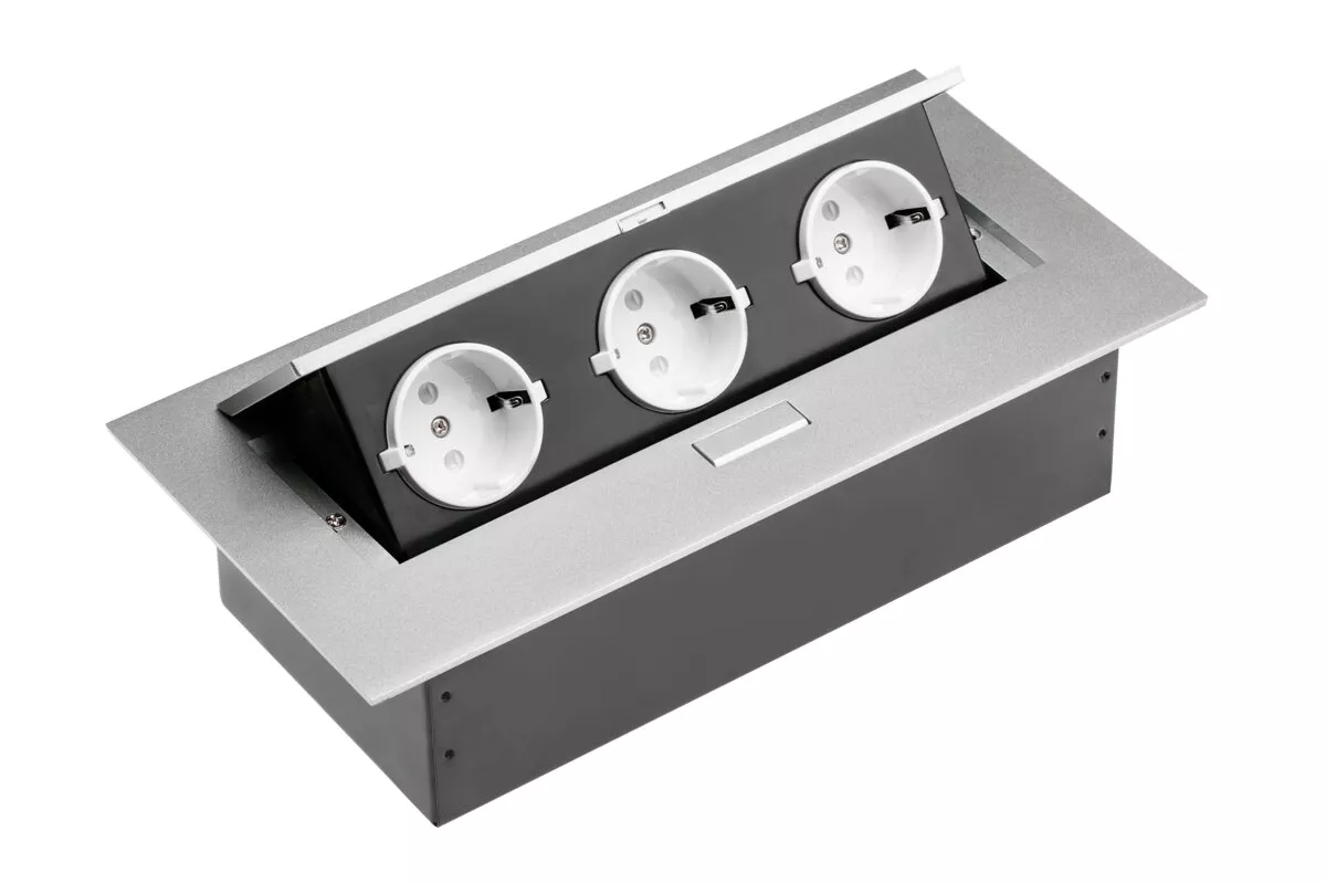 PRZEDŁUŻACZ BIURKOWY 3X GNIAZDO SCHUKO, ALUMINIUM