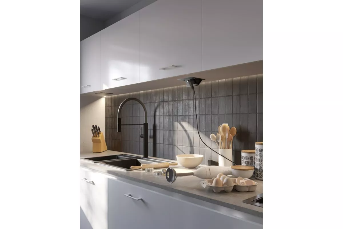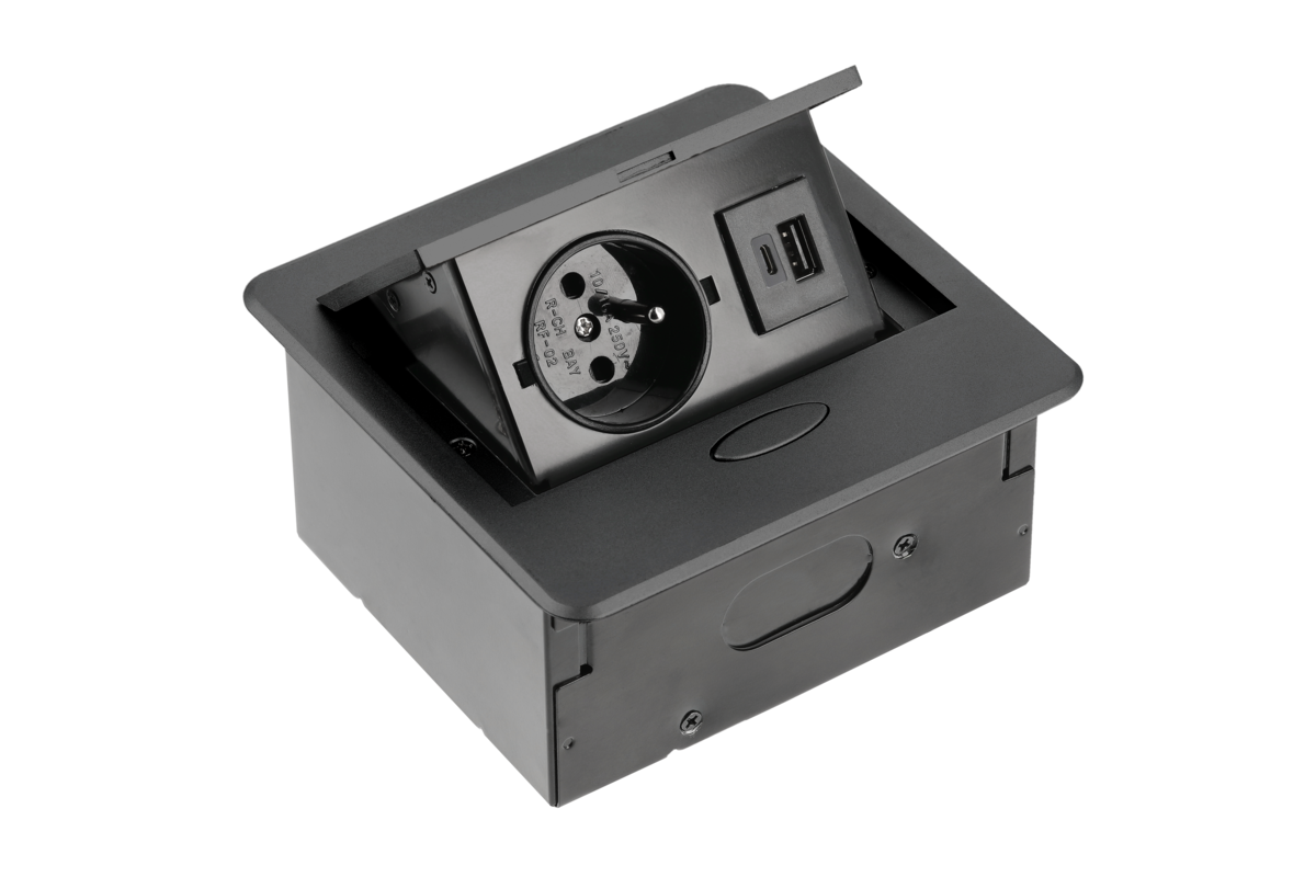 GNIAZDO MEBLOWE WPUSZCZANE AVARO, 1x GNIAZDO FRENCH, USB A+C, PRZEWÓD 1,5m, CZARNY