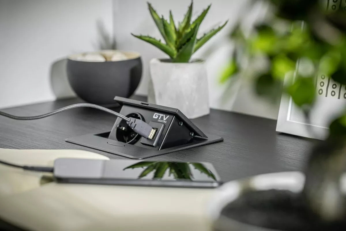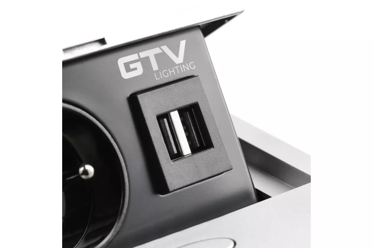 PRZEDŁUŻACZ BIURKOWY WPUSZCZANY AVARO, 1x GNIAZKO FRENCH, 2xUSB A, PRZEWÓD 1,5m, SREBRNY
