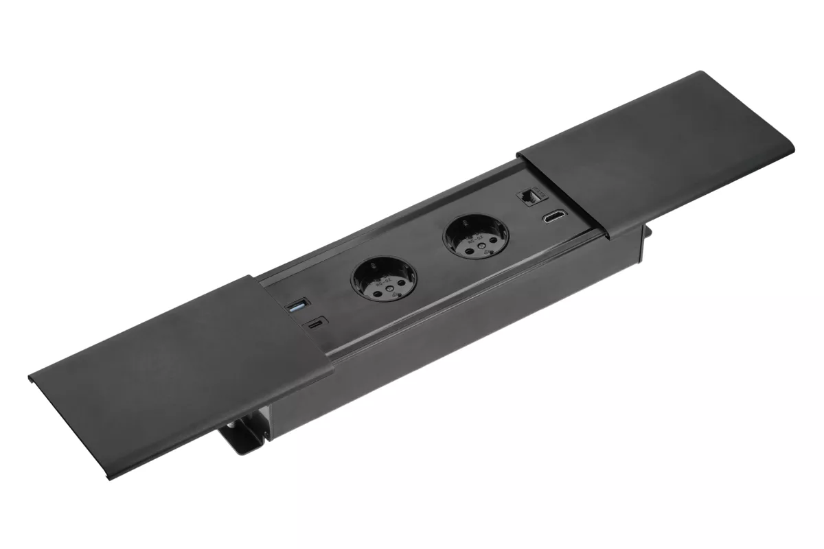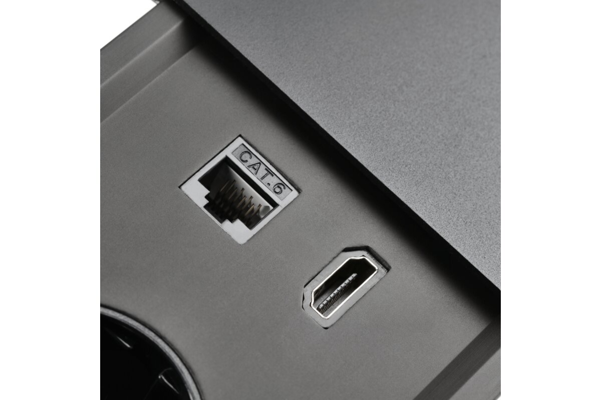 PRZEDŁUŻACZ BIURKOWY WPUSZCZANY PRESTINO, 2xGNIAZDO SCHUKO, USB A+C, RJ45, HDMI, PRZEWÓD 1,5m, CZARNY
