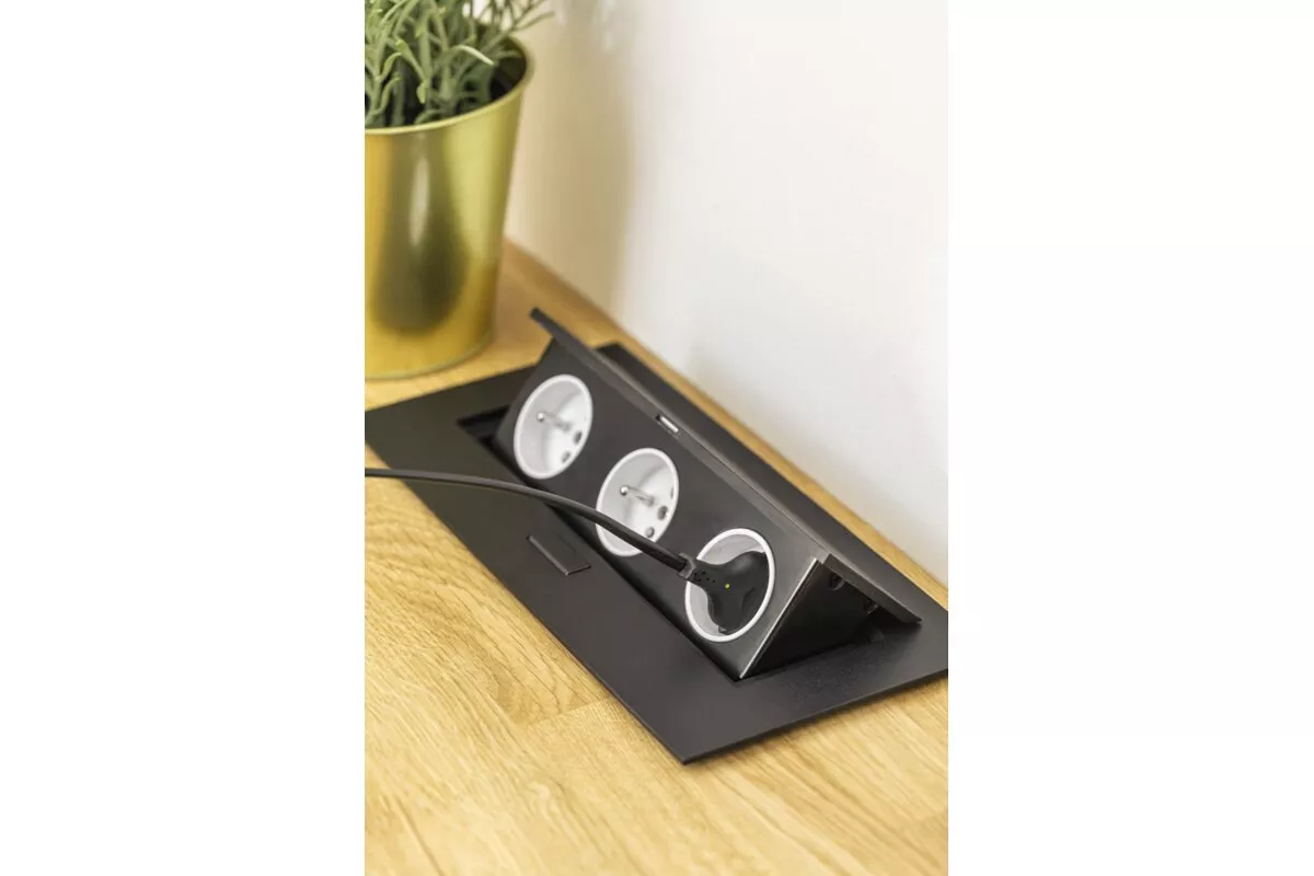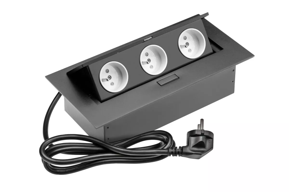 PRZEDŁUŻACZ BIURKOWY 3X GNIAZDO Z UZIEMIENIEM, KABEL ZASILAJACY Z WTYCZKĄ, CZARNY