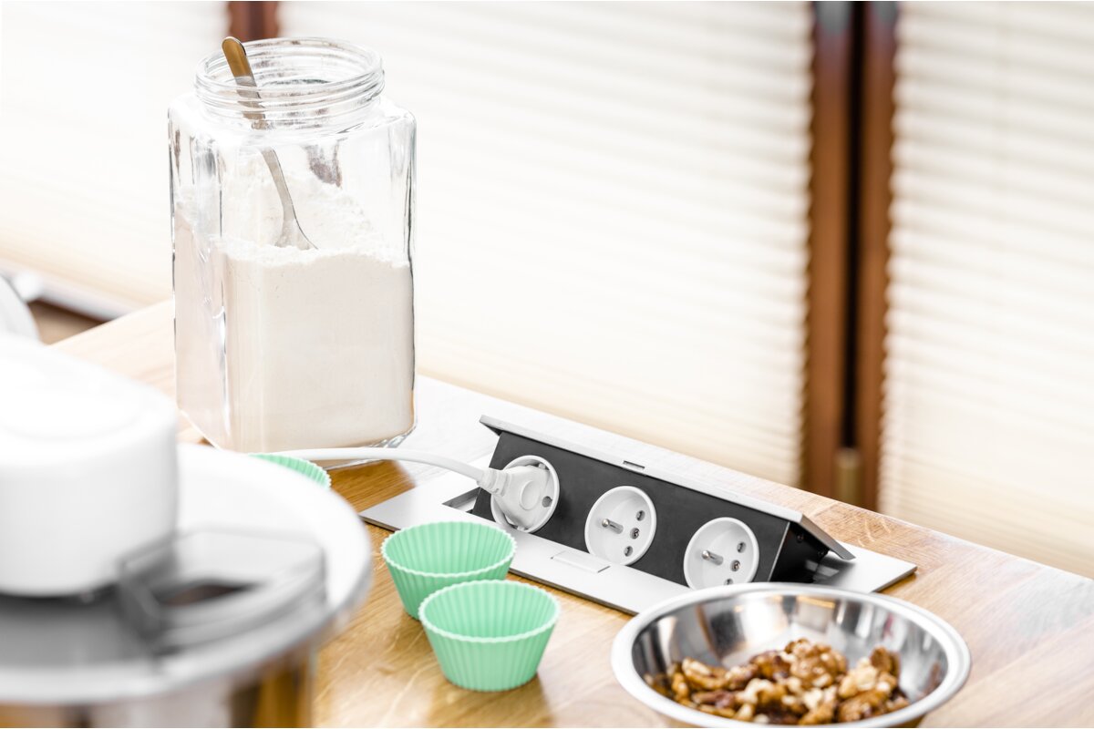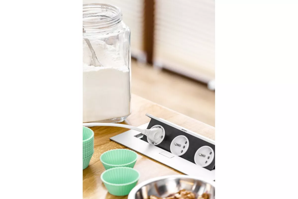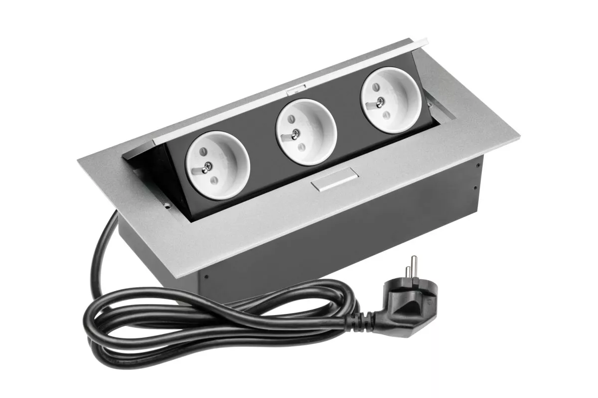 PRZEDŁUŻACZ BIURKOWY 3X GNIAZDO Z UZIEMIENIEM, KABEL ZASILAJACY Z WTYCZKĄ, ALUMINIUM