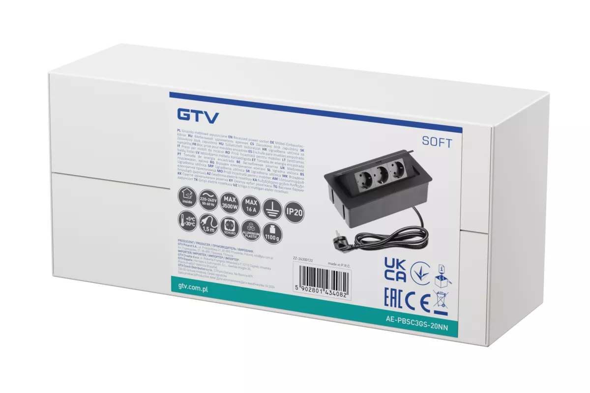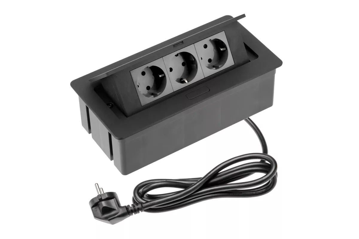 GNIAZDO MEBLOWE SOFT 3x GNIAZDO SCHUKO, KABEL ZASILAJĄCY Z WTYCZKĄ, CZARNY