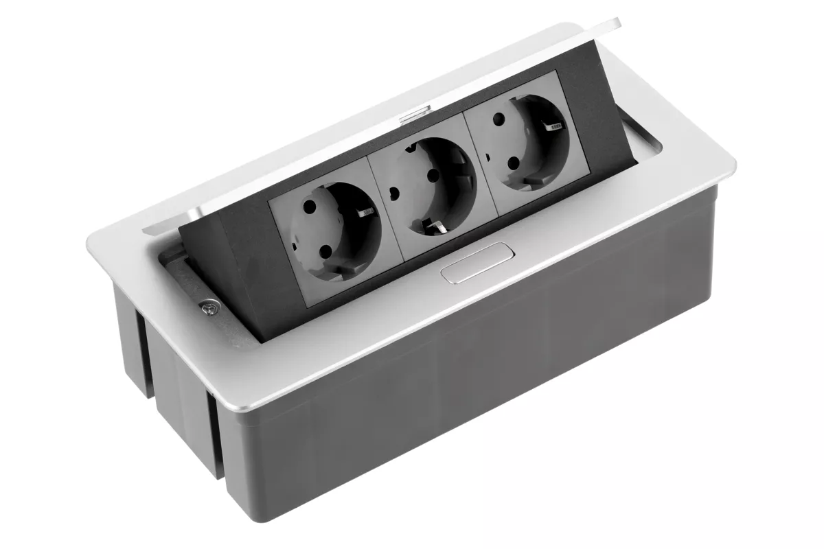 PRZEDŁUŻACZ BIURKOWY SOFT 3X GNIAZDO SCHUKO, KABEL ZASILAJĄCY Z WTYCZKĄ, ALU