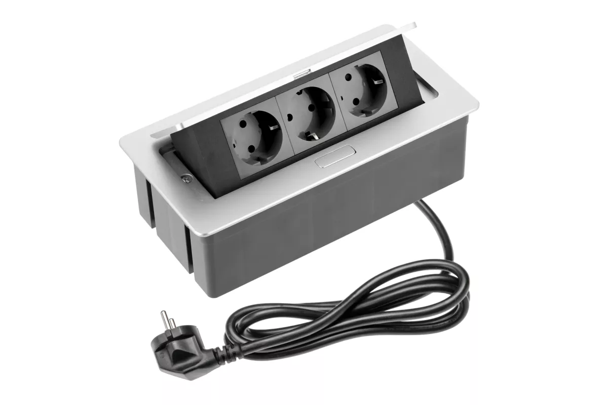 PRZEDŁUŻACZ BIURKOWY SOFT 3X GNIAZDO SCHUKO, KABEL ZASILAJĄCY Z WTYCZKĄ, ALU