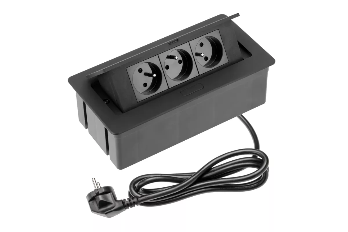 GNIAZDO MEBLOWE SOFT 3x GNIAZDO Z UZIEMIENIEMIENIEM, KABEL ZASILAJĄCY Z WTYCZKĄ, CZARNY