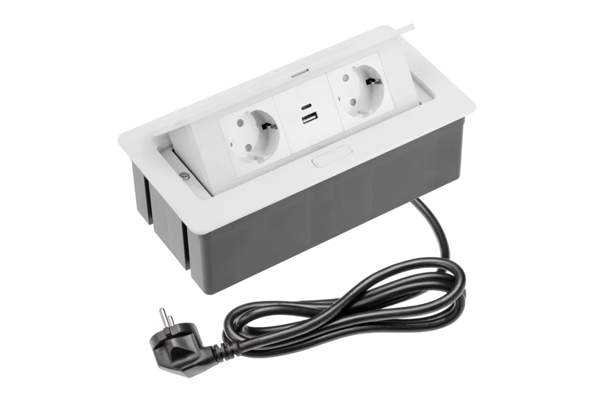 PRZEDŁUŻACZ BIURKOWY SOFT 2X GNIAZDO SCHUKO, USB A+C, KABEL ZASILAJĄCY Z WTYCZKĄ, BIAŁY