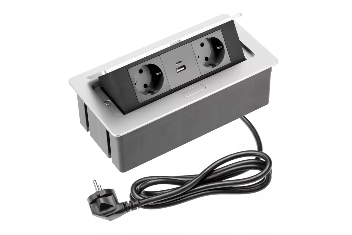 PRZEDŁUŻACZ BIURKOWY SOFT 2X GNIAZDO SCHUKO, USB A+C, KABEL ZASILAJĄCY Z WTYCZKĄ, ALUMINIUM