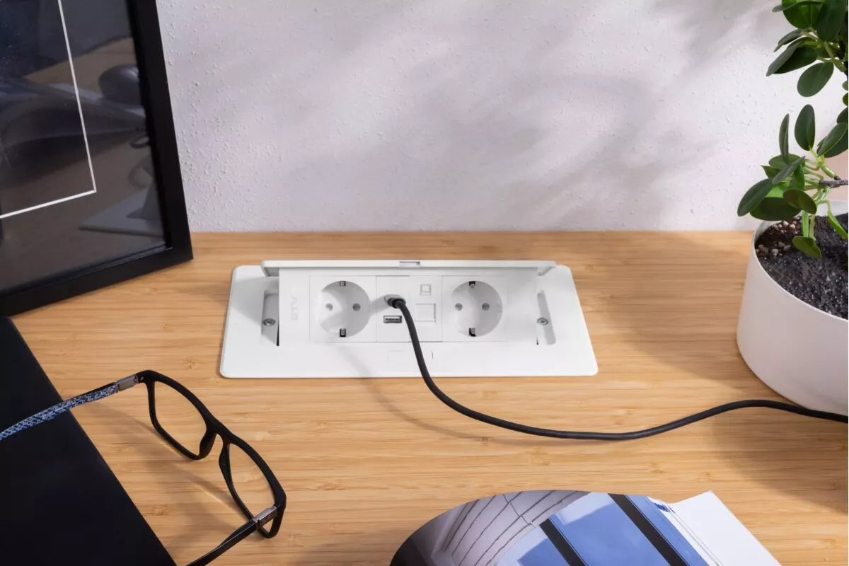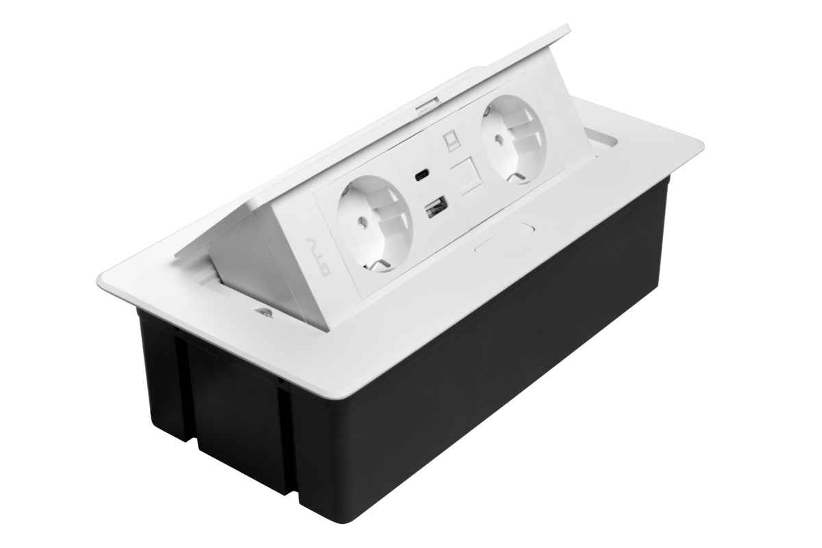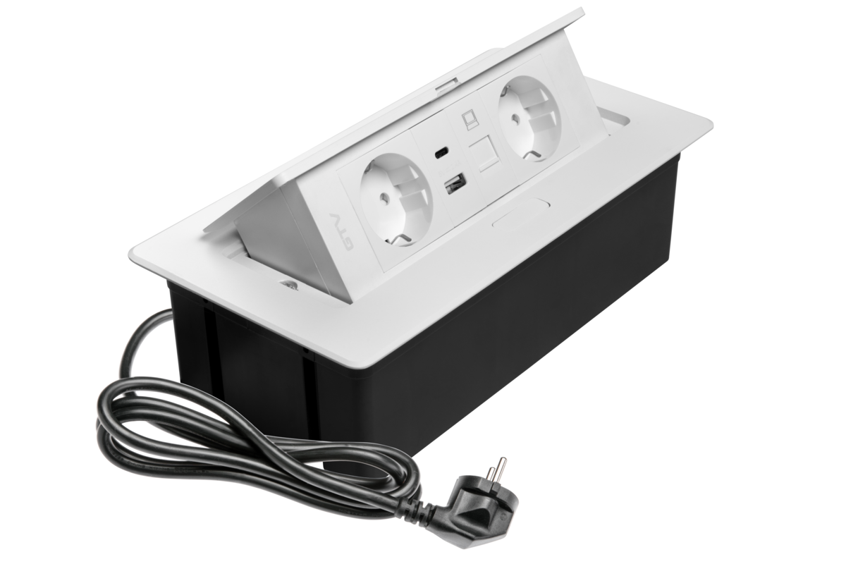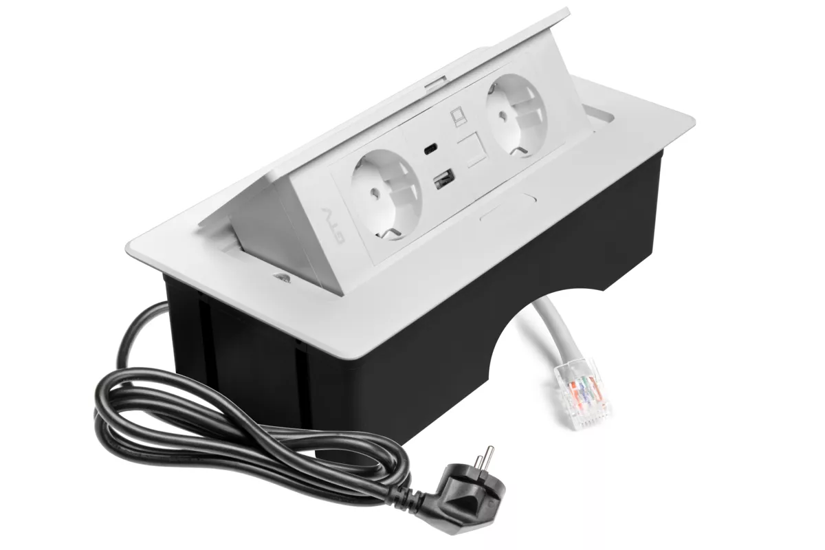 GNIAZDO MEBLOWE MULTISOFT 2X GNIAZDO SCHUKO, USB A+C, RJ45, KABEL ZASILAJĄCY Z WTYCZKĄ,BIAŁY