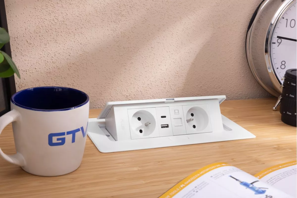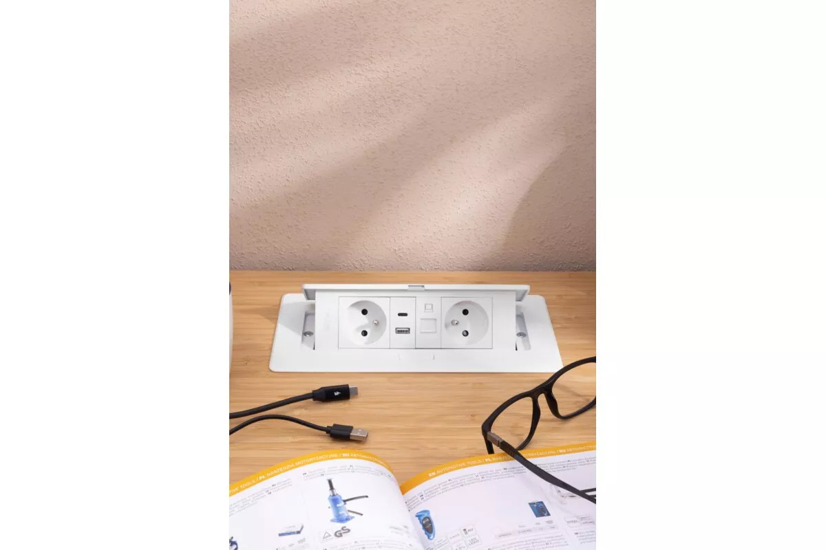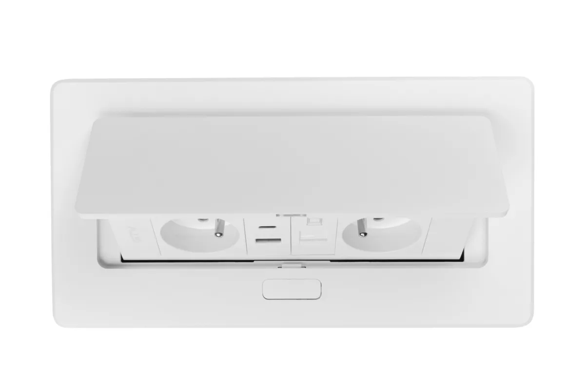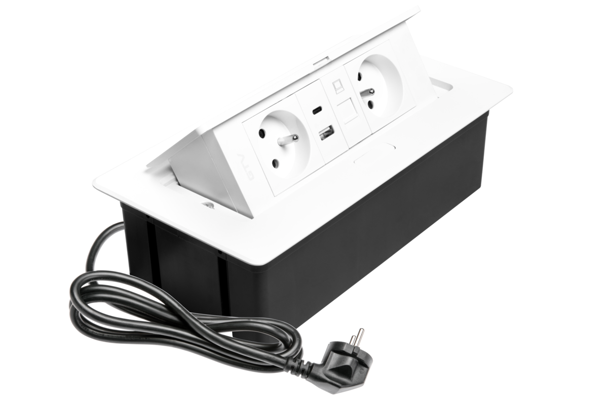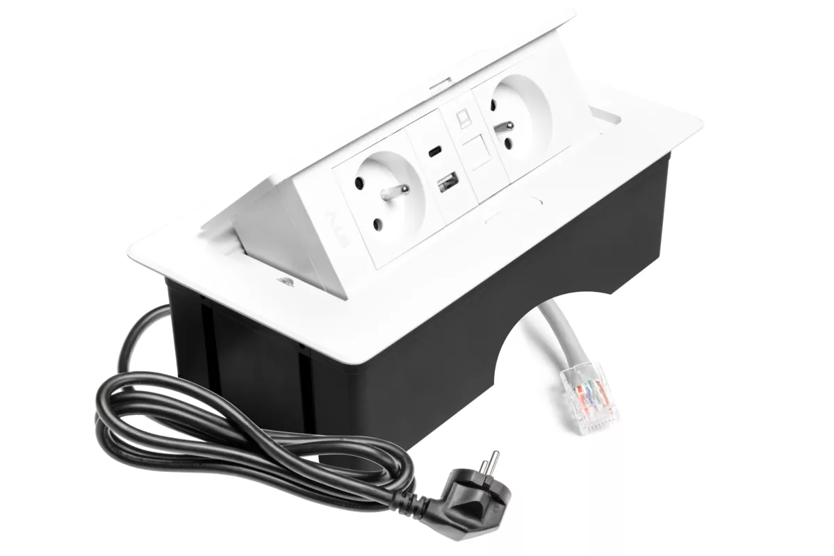 GNIAZDO MEBLOWE MULTISOFT 2X GNIAZDO Z UZIEMIENIEM, USB A+C, RJ45, KABEL ZASILAJĄCY Z WTYCZKĄ, BIAŁY