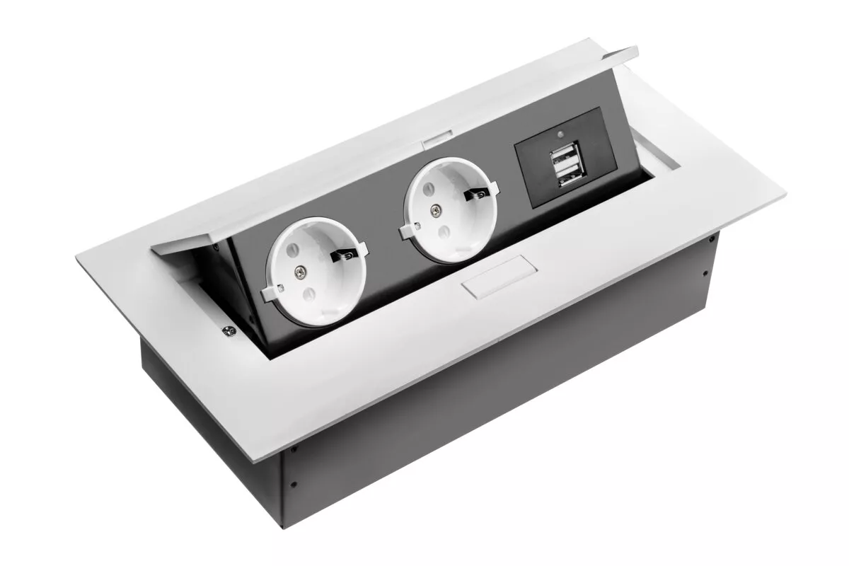 PRZEDŁUŻACZ BIURKOWY, 2X GNIAZDO SCHUKO, 2XUSB, BEZ KABLA, BIAŁY