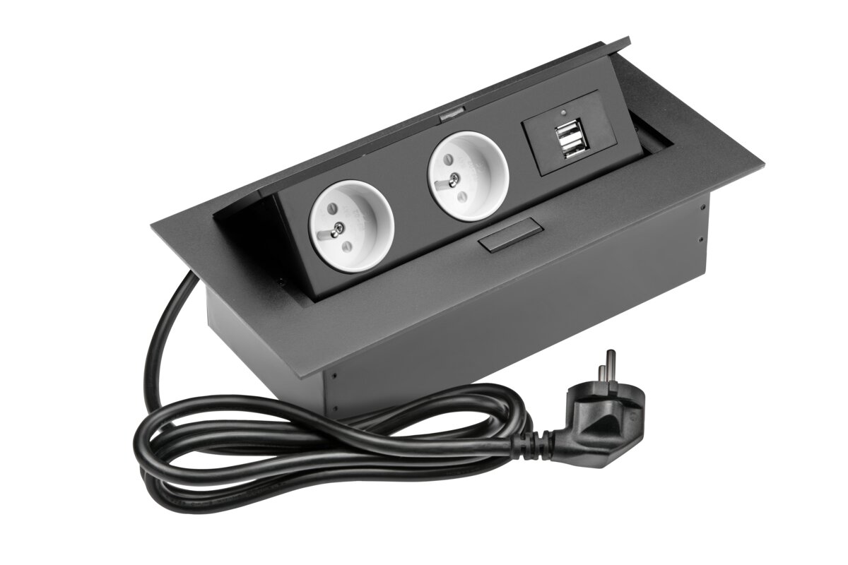 PRZEDŁUŻACZ BIURKOWY 2X GNIAZDO Z UZIEMIENIEM, 2XUSB, KABEL ZASILAJĄCY Z WTYCZKĄ, CZARNY