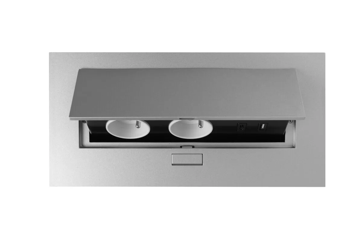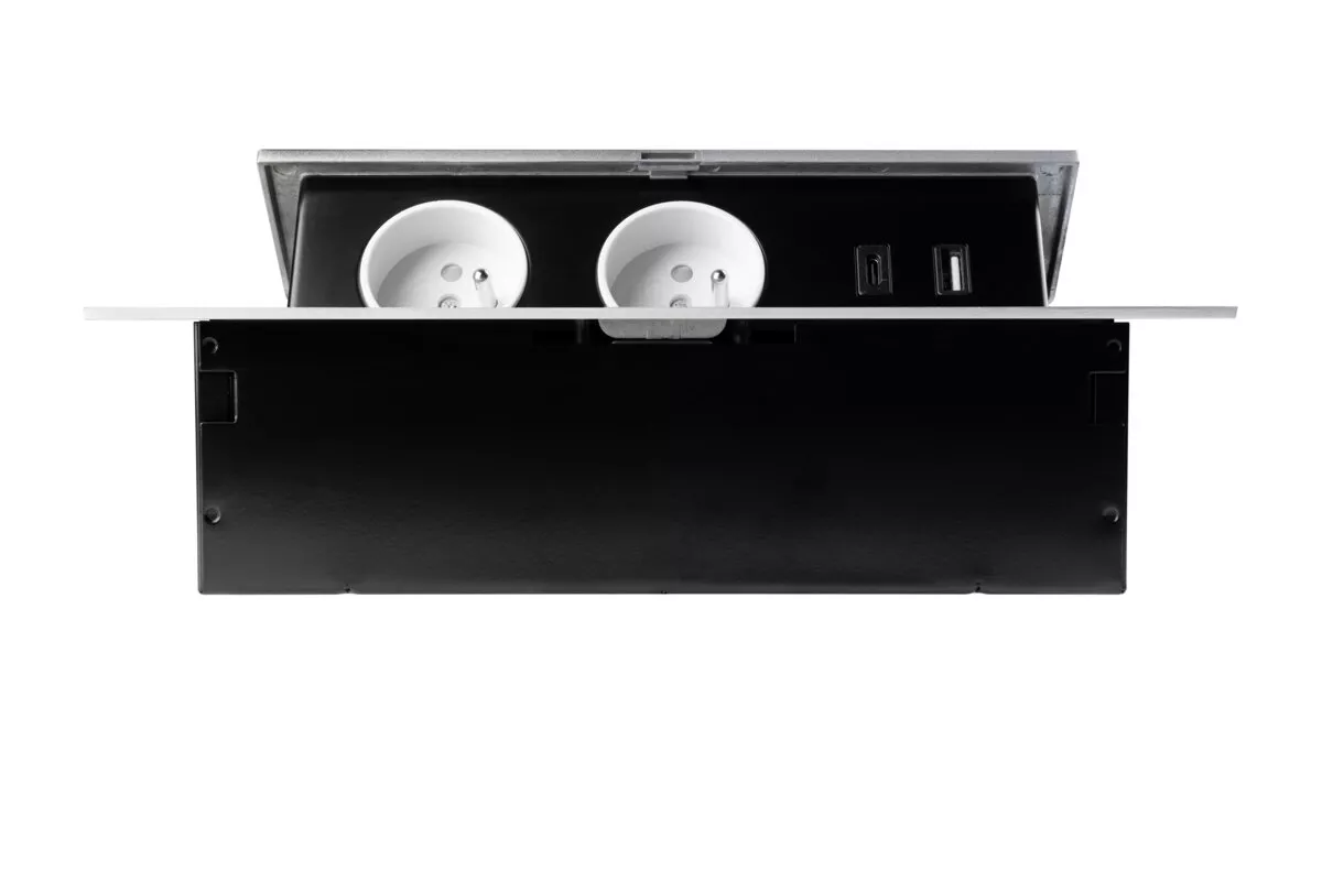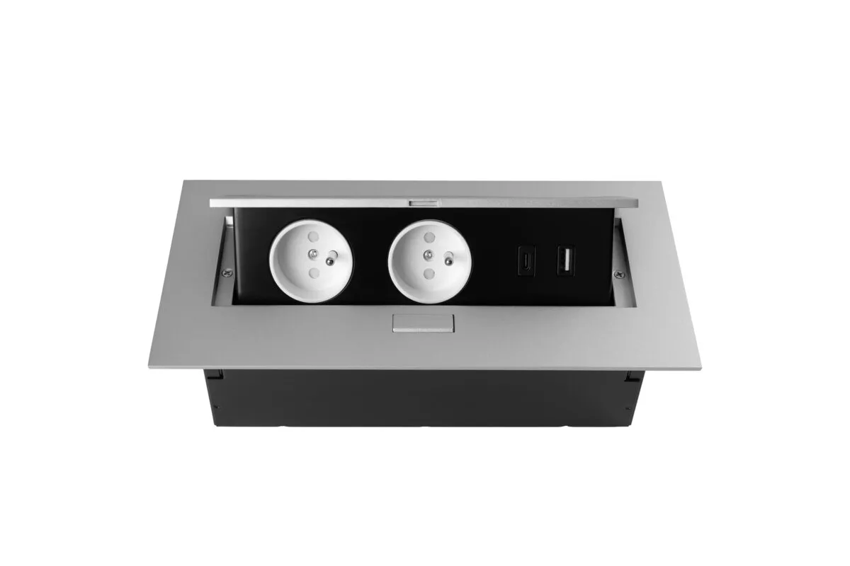 GNIAZDO MEBLOWE 2x GNIAZDO Z UZIEMIENIEMIENIEM, USB A+C, KABEL ZASILAJACY Z WTYCZKĄ, ALUMINIUM