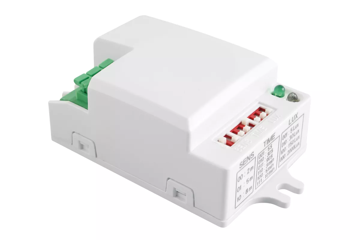 CZUJNIK MIKROFALOWY RUCHU SRC812 MINI, max. 500W, AC 220-240V, 50/60Hz, KĄT DZIAŁANIA 360*, ZASIĘG 2-8m ± 1,5- 3,5m, IP20, WSPÓŁPRACUJE Z LED, NATYNKOWY, BIAŁY