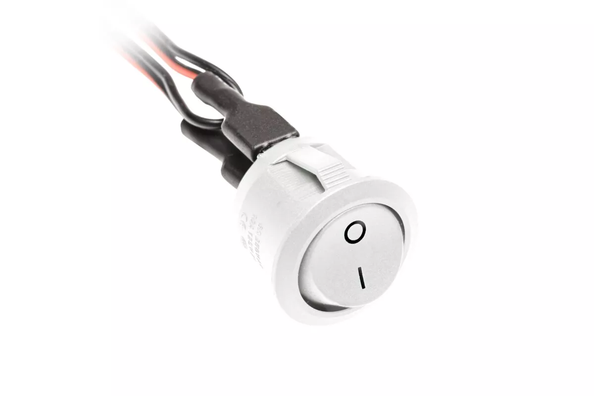 PRZEŁĄCZNIK KOŁYSKOWY BIAŁY 12V 10A Z PRZEWODAMI 0,1m I KONEKTORAMI MINI AMP MĘSKI I ŻEŃSKI
