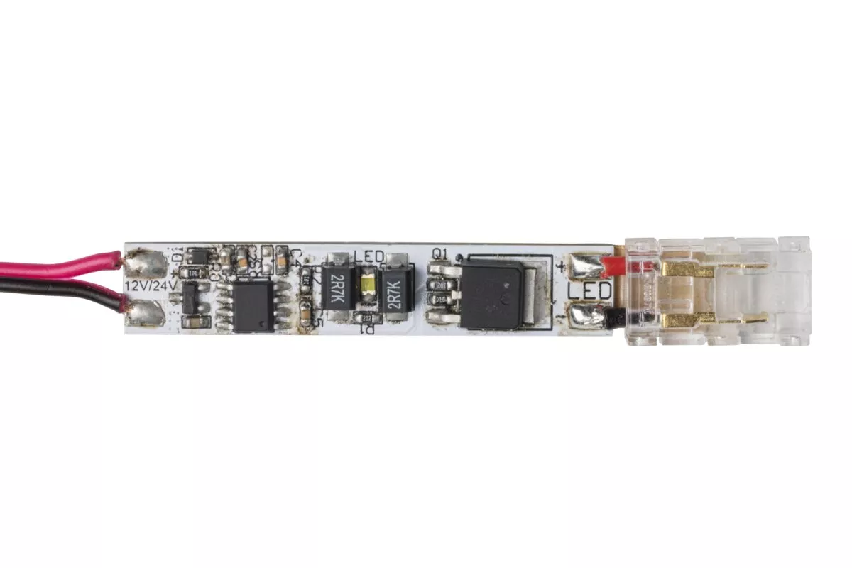 WŁĄCZNIK BEZDOTYKOWY ŚCIEMNIALNY DO PROFILI LED Z KONEKT COB I PRZEW 15cm (2x0,20), 12V/24V max. 3A
