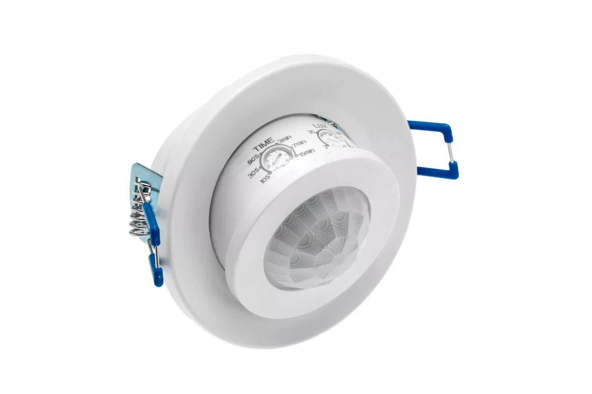 CZUJNIK RUCHU CR-15, max. 800W, AC220-240V, 50/60Hz, KĄT DZIAŁANIA 360*, ZASIĘG 8m ± 2,2-4m, IP20, WSPÓŁPRACUJE Z LED, WPUSZCZANY, BIAŁY