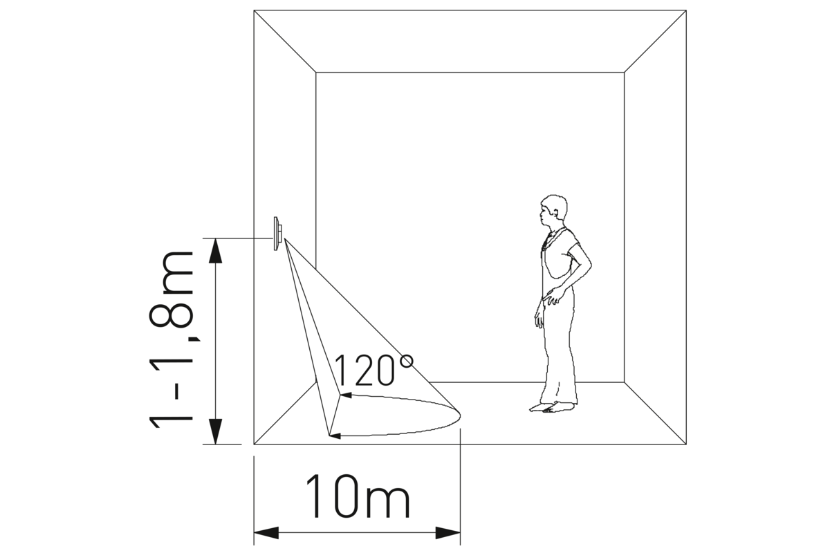 CZUJNIK RUCHU CR-20, max.500W, AC220-240V, KĄT DZIAŁANIA 120*, ZASIĘG 10m