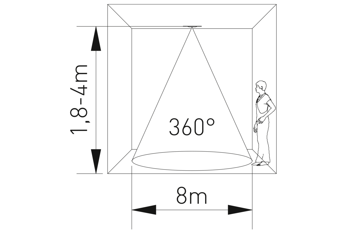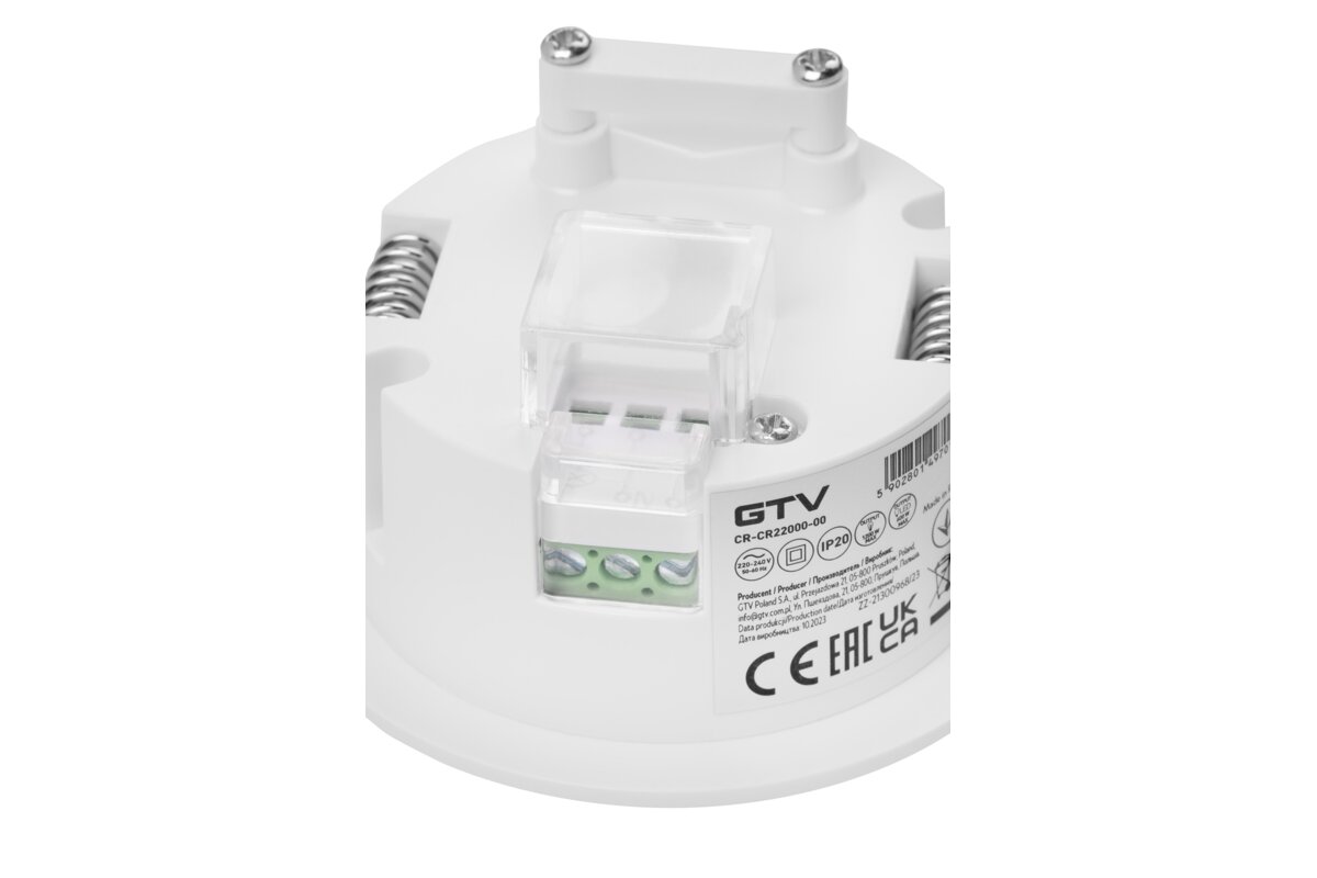 CZUJNIK RUCHU CR-22, max.1200W, AC220-240V, KĄT DZIAŁANIA 360*, ZASIĘG 8m
