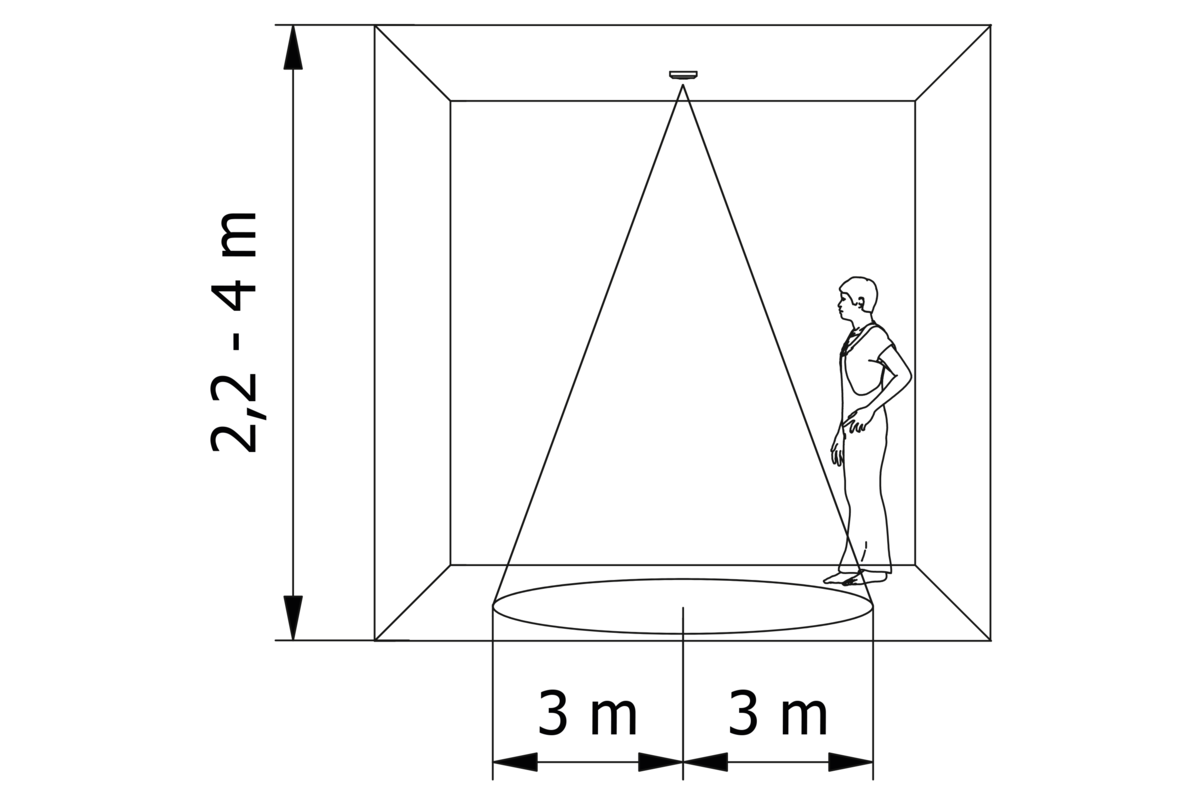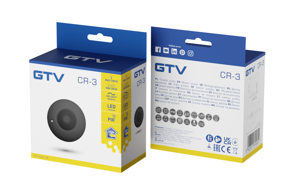 CZUJNIK RUCHU CR-3, max.1200W, AC220-240V, kąt 360°, ZASIĘG 6m, IP20, CZARNY