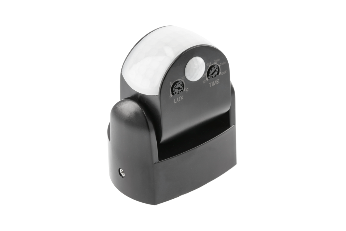 CZUJNIK RUCHU CR-9 mini, max.1200W, AC220-240V, 50/60Hz, 180°/360°, max.12m, IP65, LED, CZARNY