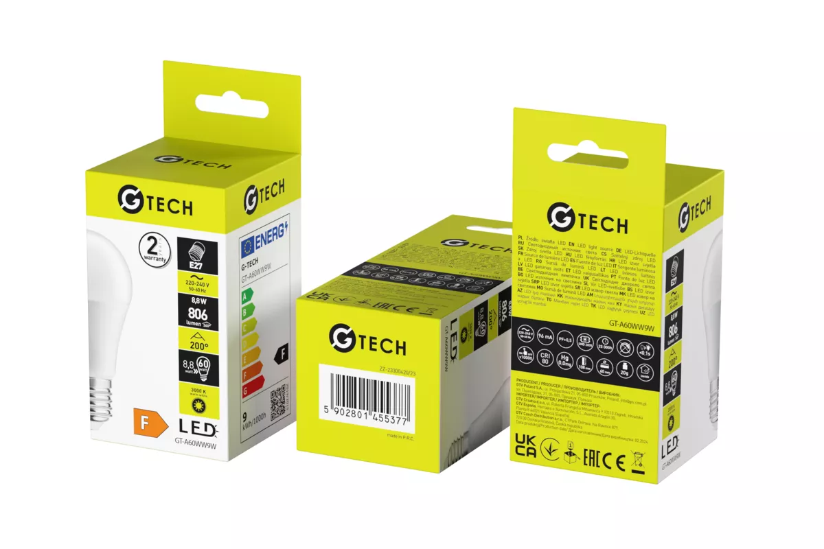 G-TECH ŹRÓDŁO ŚWIATŁA LED, A60, E27, 8,8W, 806lm, 3000K, AC220-240V, 200°