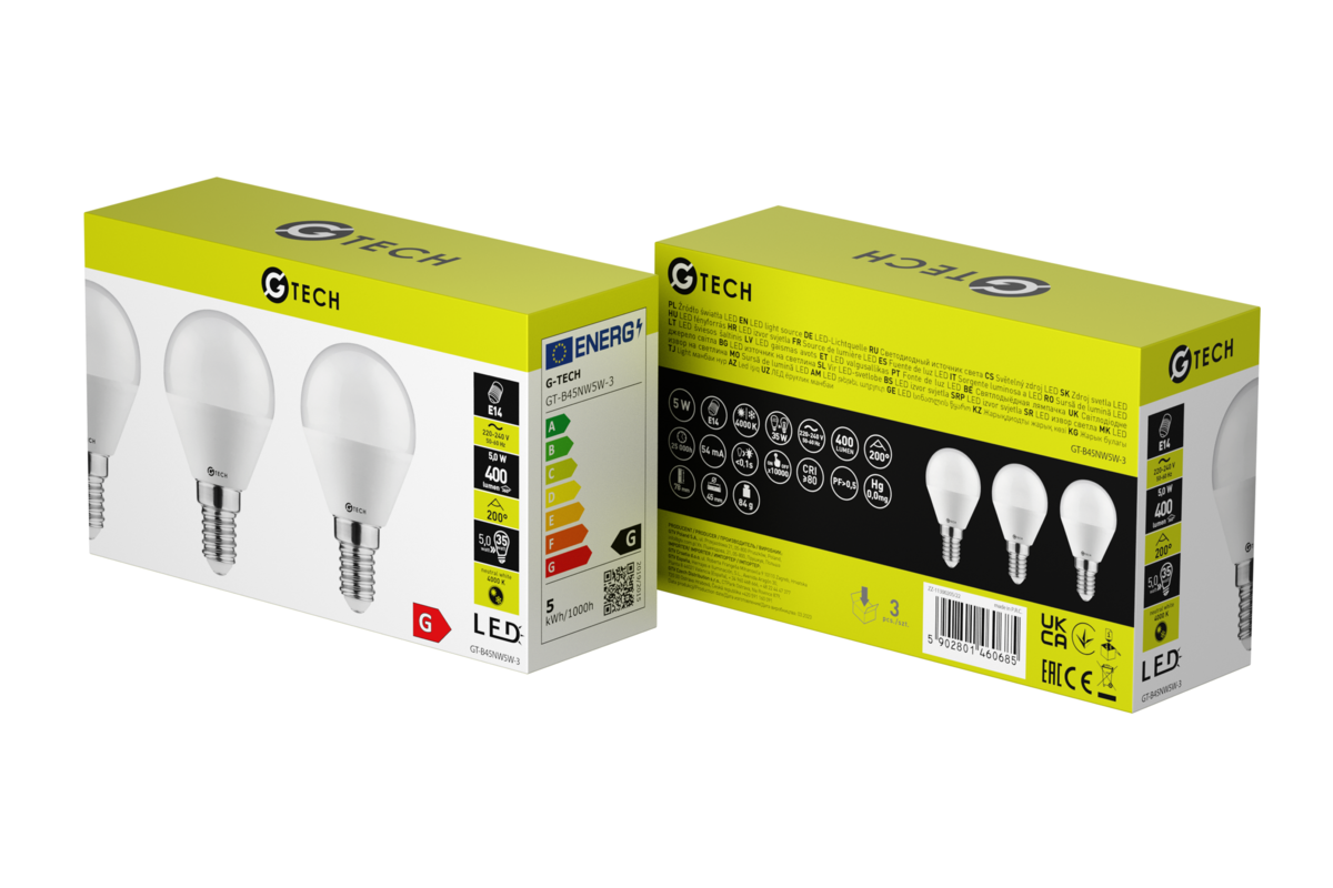 G-TECH ŹRÓDŁO ŚWIATŁA LED, 3pcs., A-G, B45, 4000K, E14, 5,0W, AC220-240V, 200°, 400lm, 54mA