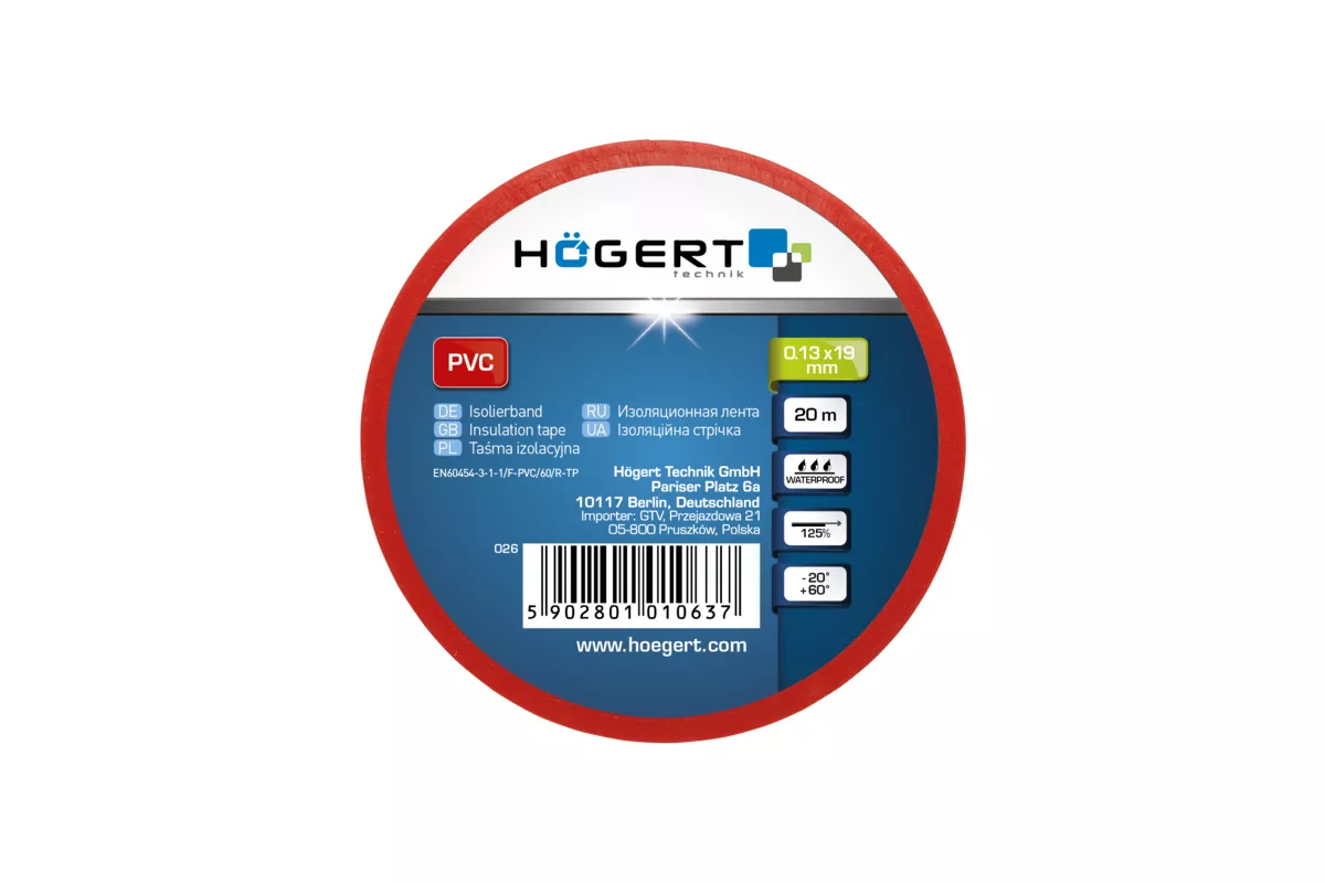 Taśma izolacyjna 0.13x19mm x 20m, czerwona