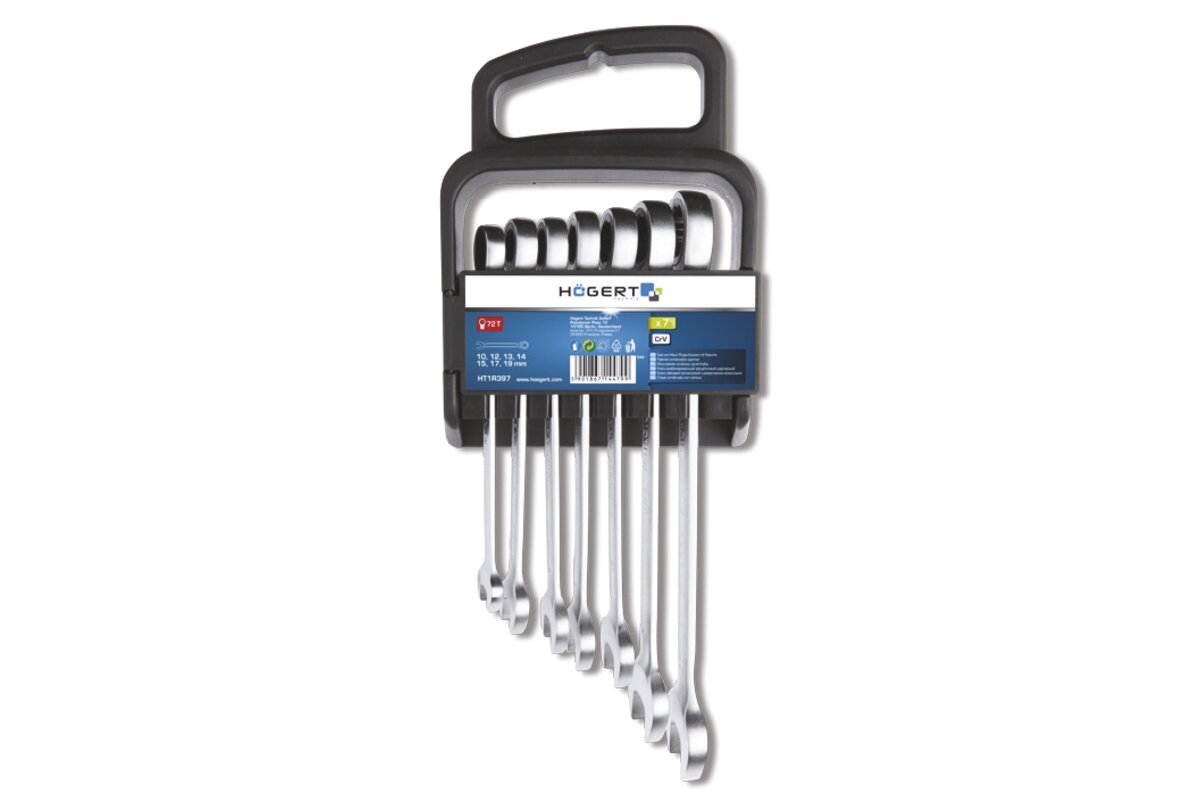 Zestaw kluczy płasko-oczkowych z grzechotką, 7 szt., 10-19 mm