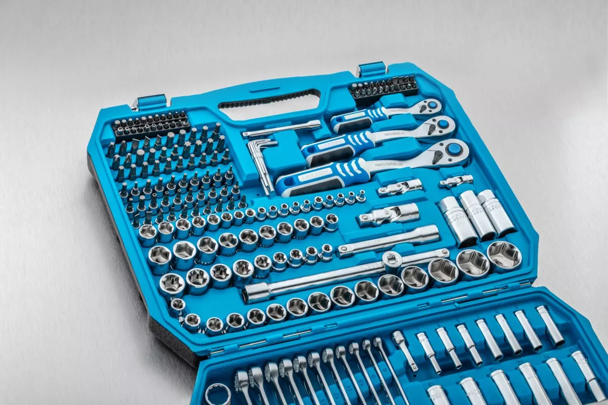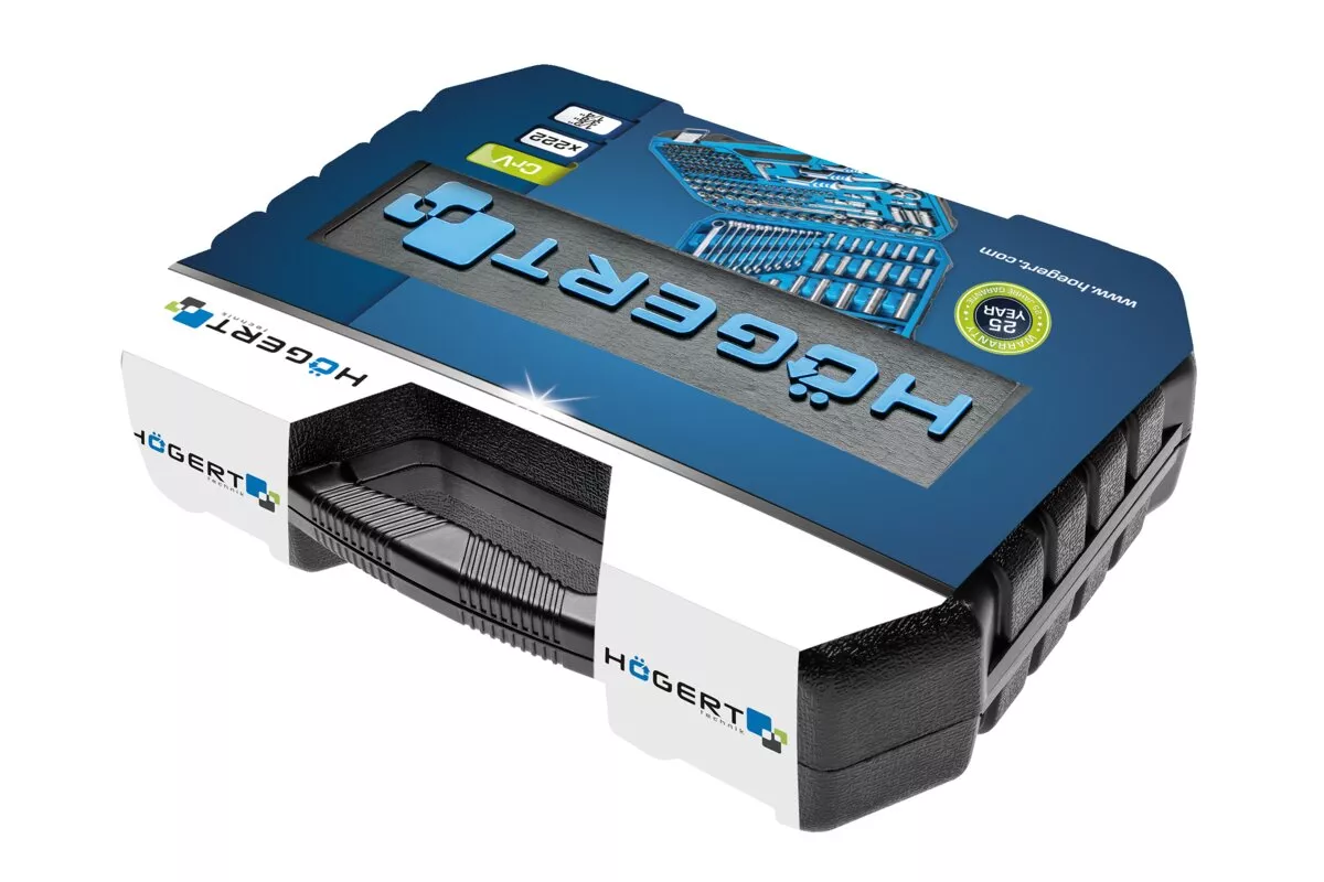 Zestaw narzędzi, 222 szt. CrV, 1/4", 3/8", 1/2"