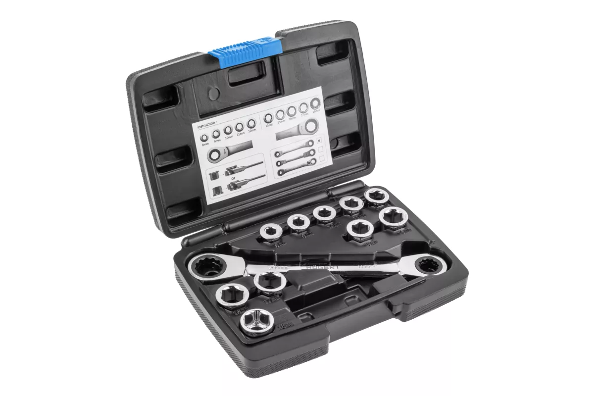 Klucz oczkowy z grzechotką z nasadkami 11 szt
