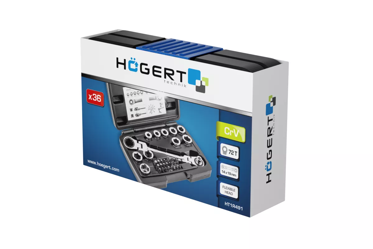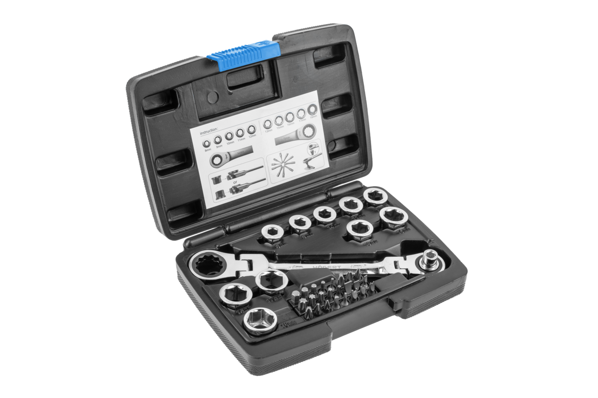 Klucz oczkowy z grzechotką z przegubem z nasadkami 36 szt
