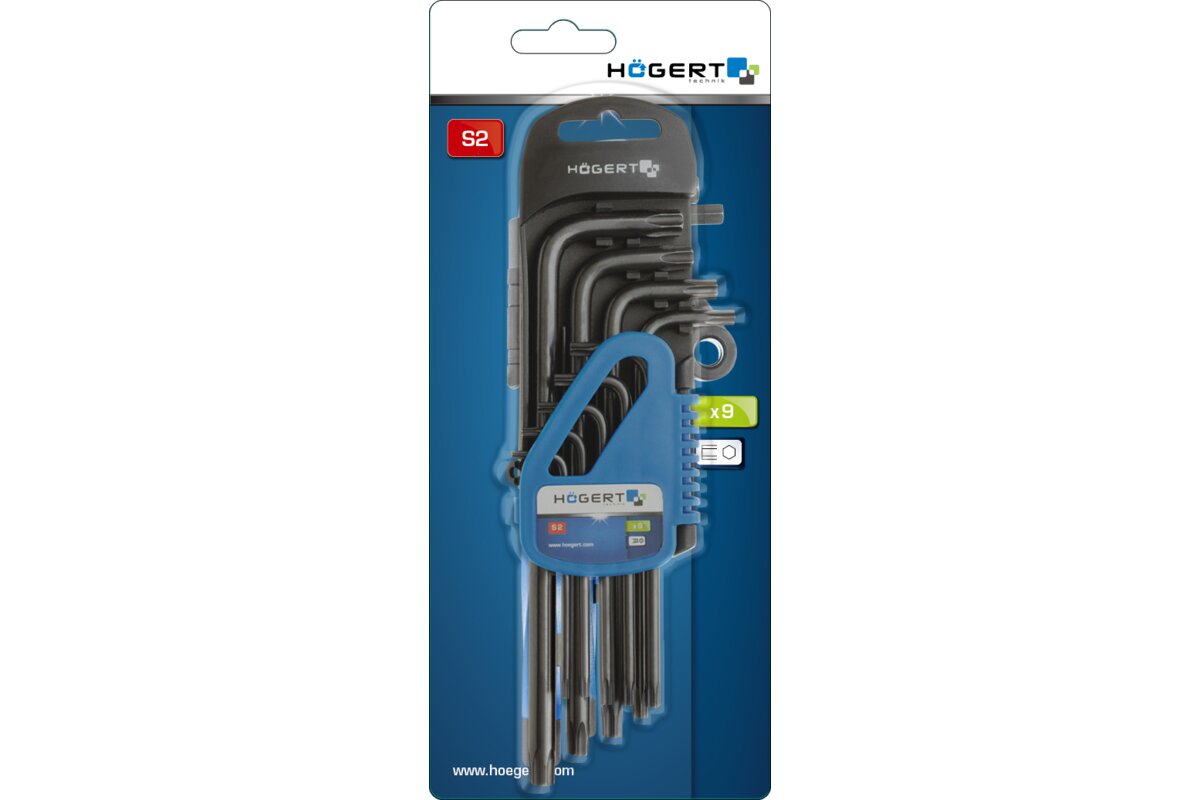 Klucze TORX długie, stal S2, 9 szt.