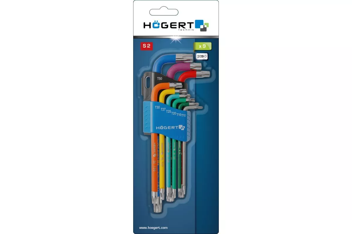 Klucze TORX długie, kodowane kolorystycznie, stal S2, 9 szt.