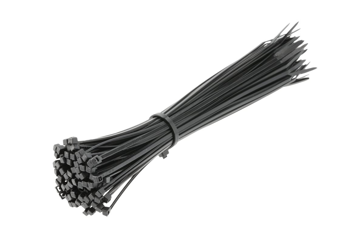Nylonowe opaski zaciskowe 2,5 x 200 mm, 100 szt., czarne, odporne na promieniowanie UV