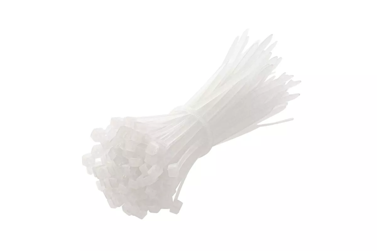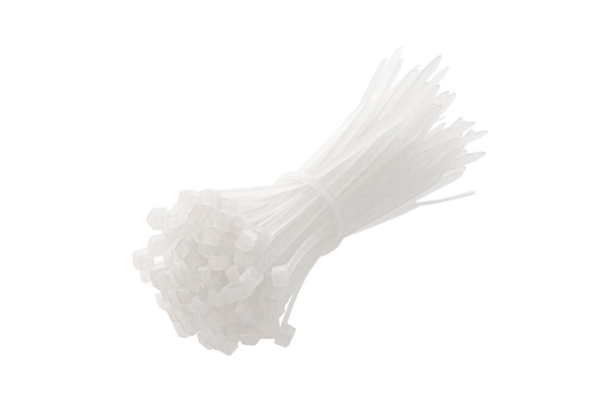 Nylonowe opaski zaciskowe 2,5 x 100 mm, 100 szt., białe, odporne na promieniowanie UV