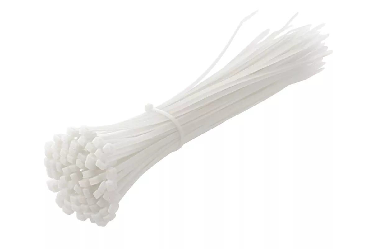 Nylonowe opaski zaciskowe 4,8 x 300 mm, 100 szt., białe, odporne na promieniowanie UV