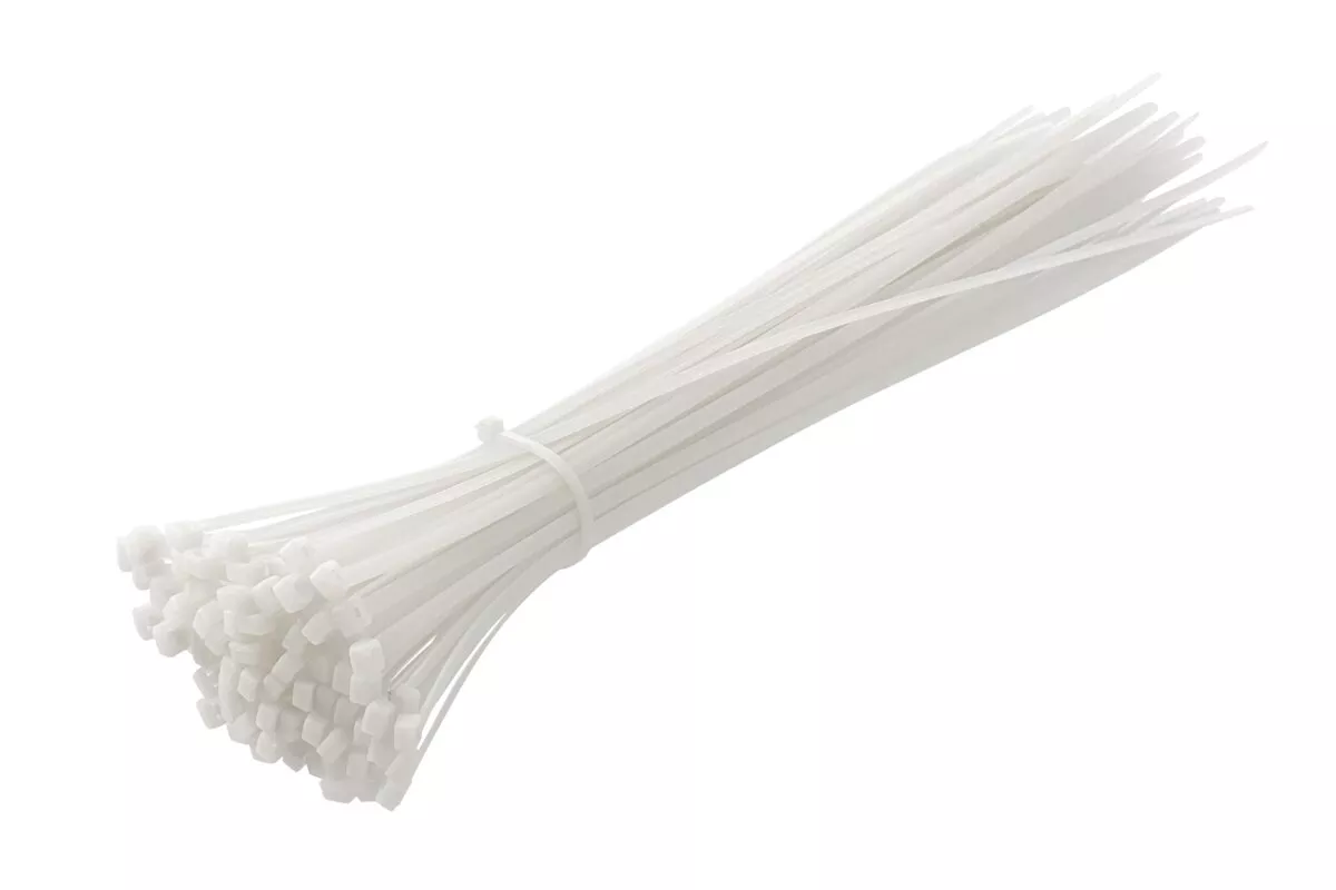 Nylonowe opaski zaciskowe 4,8 x 370 mm, 100 szt., białe, odporne na promieniowanie UV