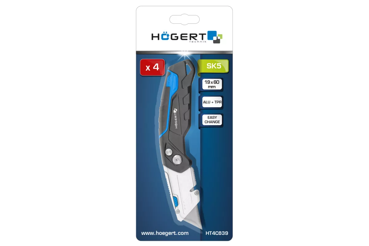 Nóż z ostrzem trapezowym składany 1+3
