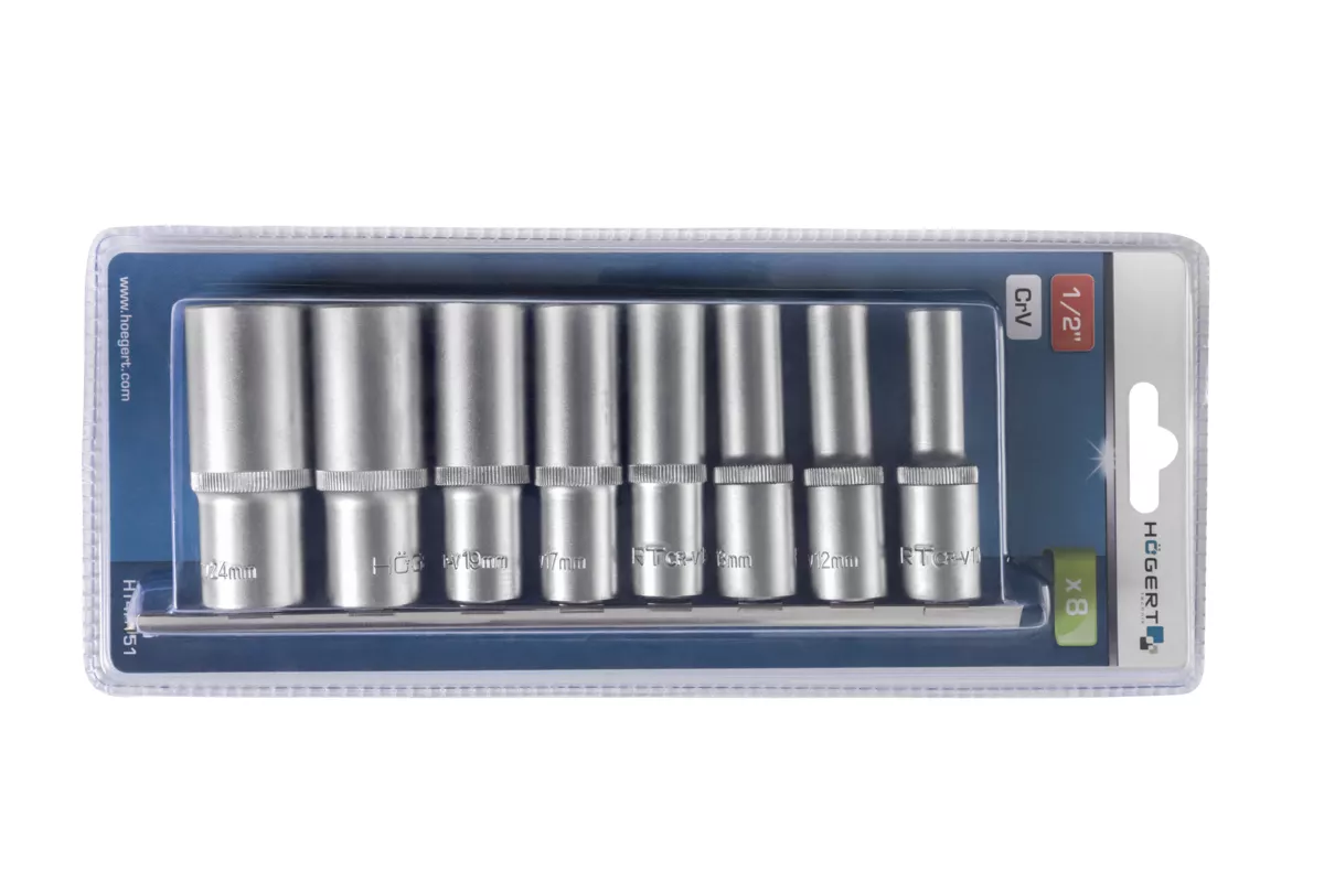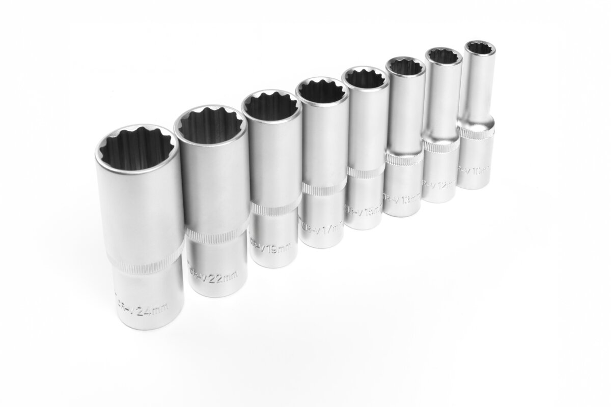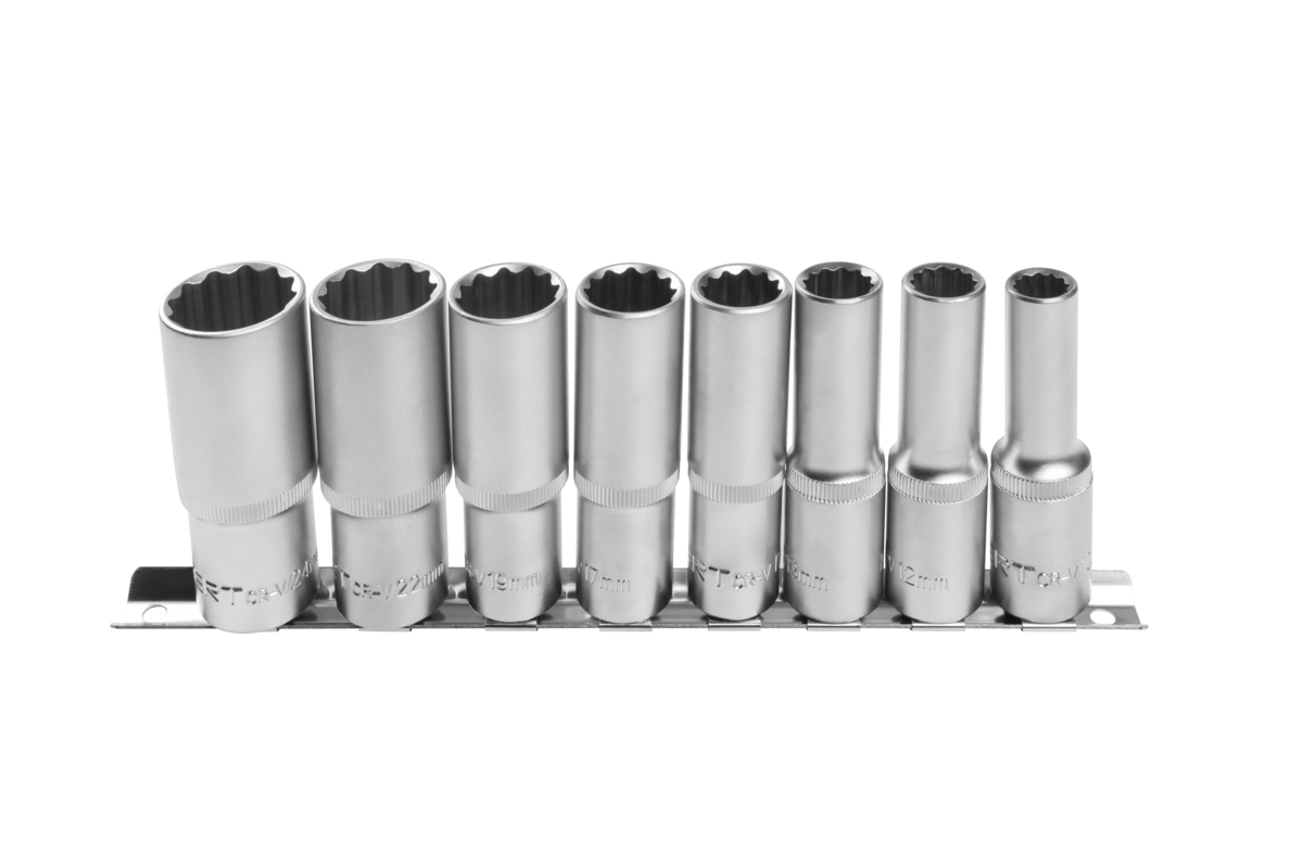 Zestaw kluczy nasadowych wielokątnych długich 12-kątnych 1/2", 8 szt.