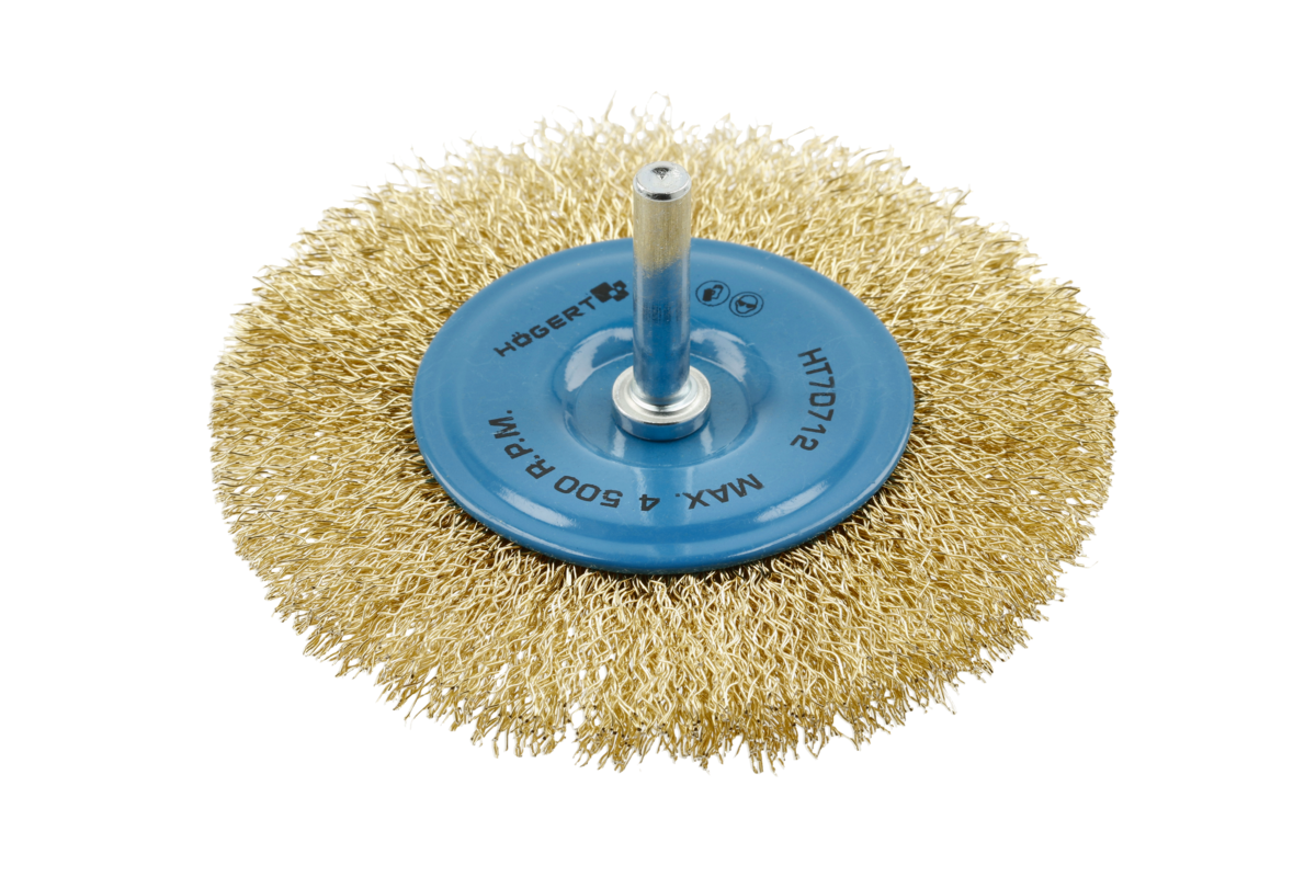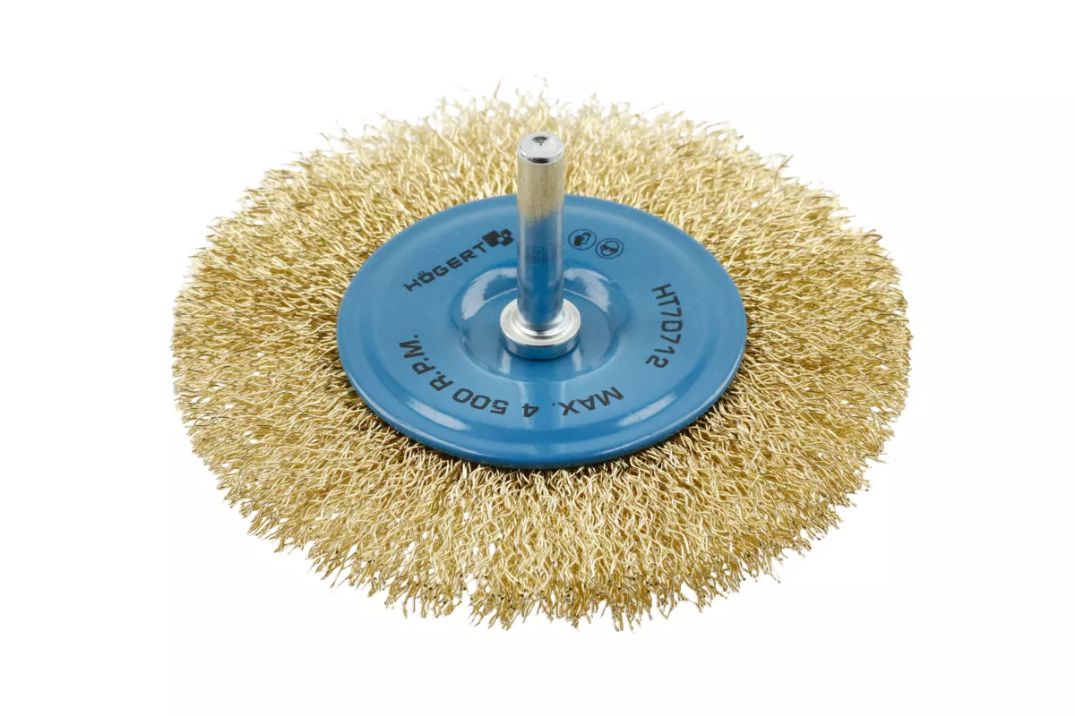 Szczotka tarczowa z trzpieniem 100 mm, drut mosiężny 0,3 mm
