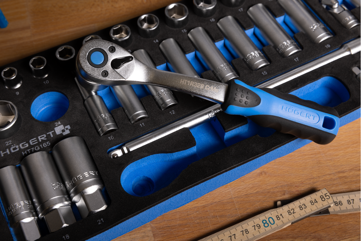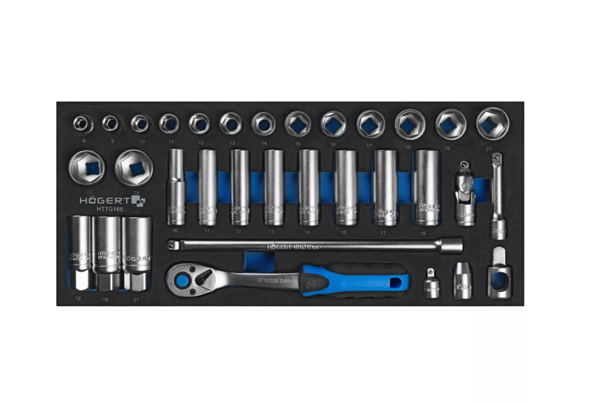 Zestaw narzędzi z grzechotką 3/8", 33 szt., wkład EVA