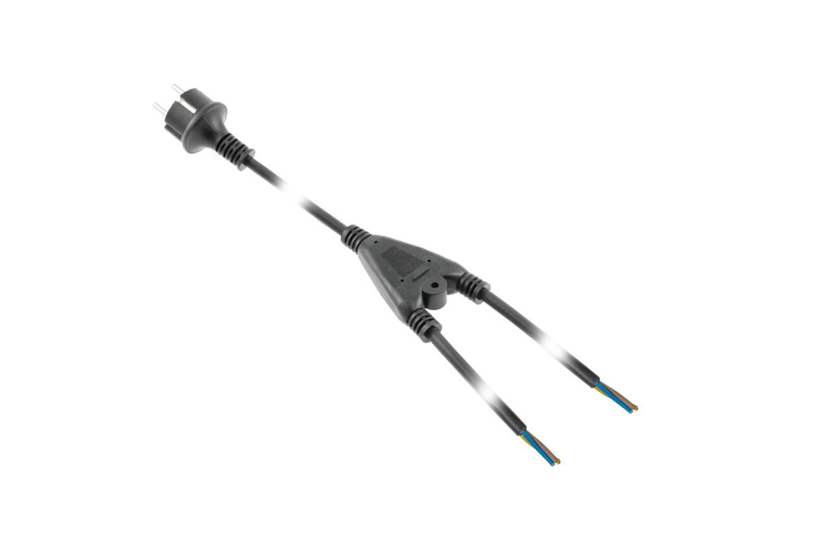 PRZEWÓD ZASILAJĄCY ROZDZIELACZ (DWÓJNIK) Z WTYCZKĄ EURO, AC230V, RUBBER, 2m, 3x1mm2, CZARNY