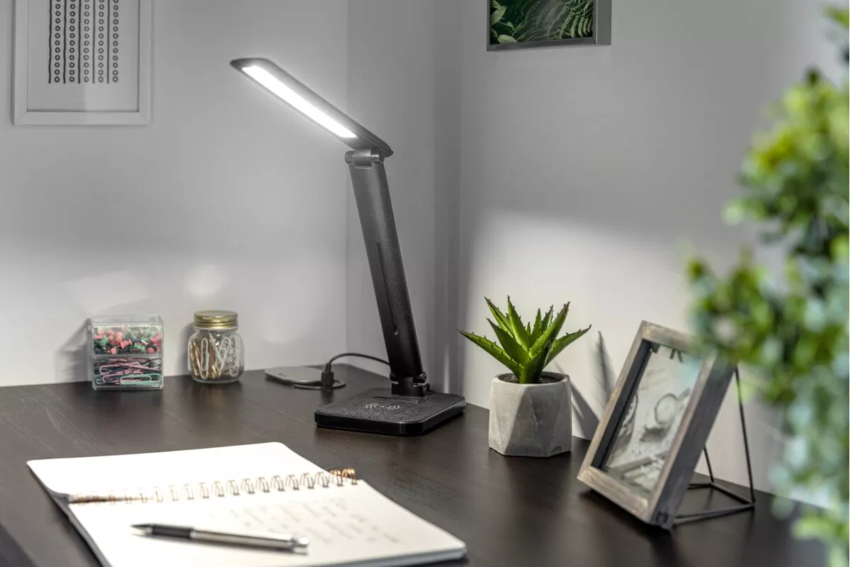 LAMPKA BIURKOWA IZUKA LED, 6W, 400lm, AC220-240V, 50/60Hz, CCT, ŁADOWARKA INDUKCYJNA, CZARNY