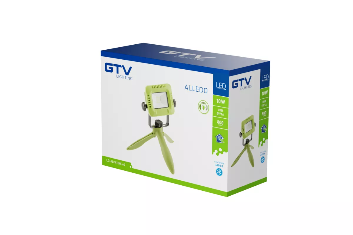 NAŚWIETLACZ LED Z AKUMULATOREM ALLEDO 10W, 800lm, AC220-240V, 50/60 Hz, PF>0,5, RA>80, IP54, 120°, 6400K, ZIELONY