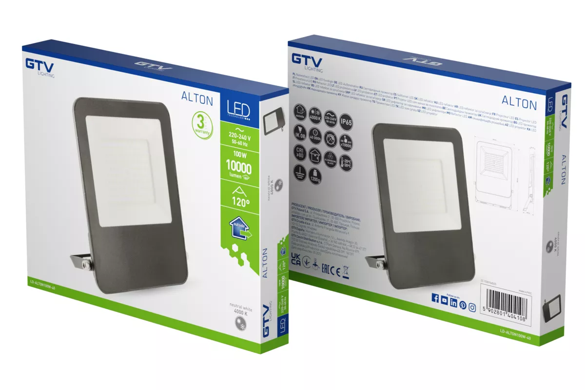 NAŚWIETLACZ LED ALTON, 100W, 10000lm, 4000K, AC220-240V, 50/60 Hz, PF>0,9, IP65, 120°, 3y